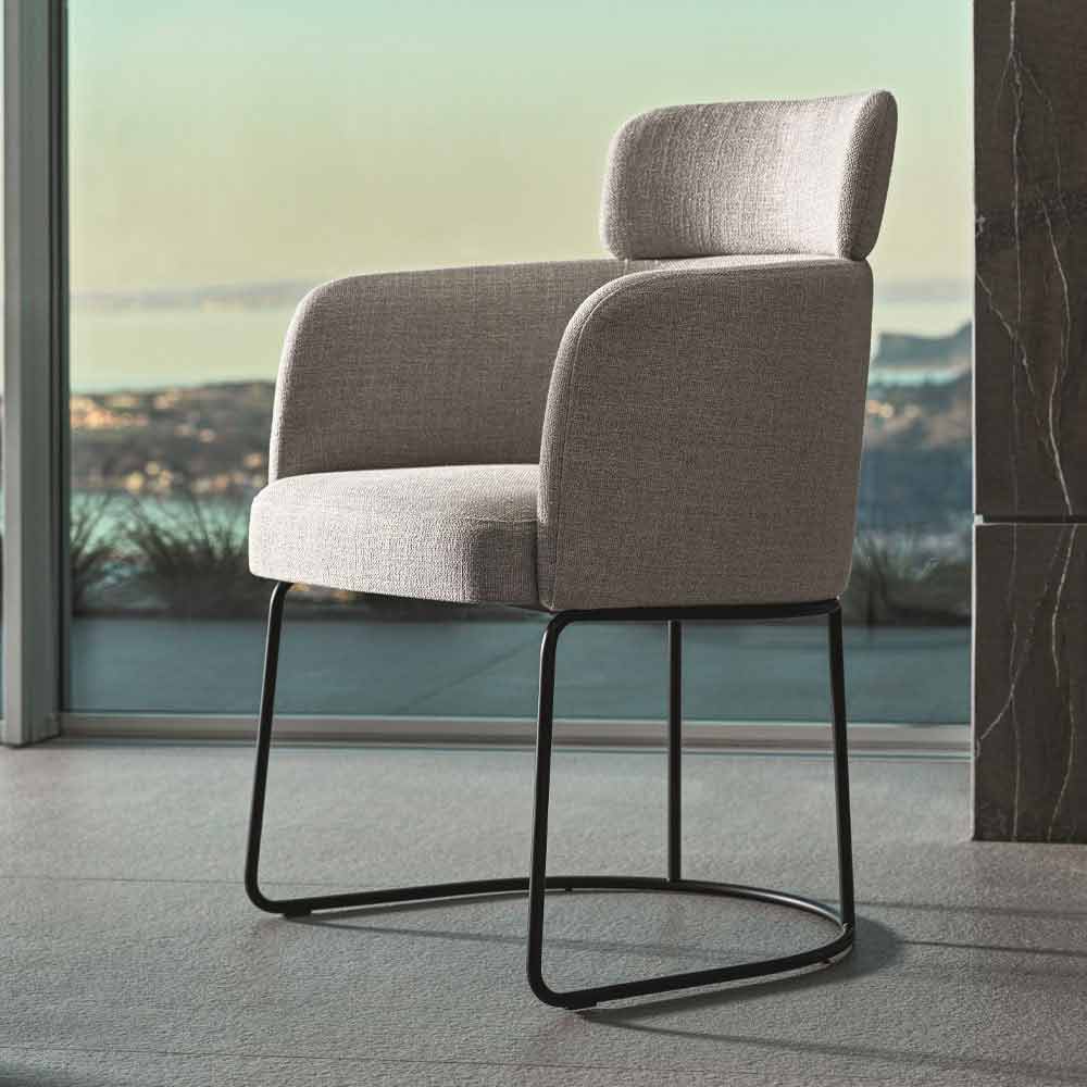 Chair upholstered in fabric with high quality Made in Italy metal base.