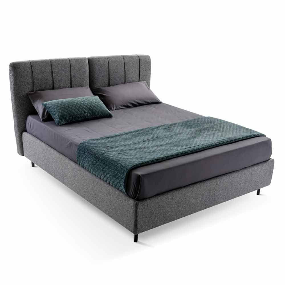 Fabric Double Bed with Box and Striped Headboard Made in Italy - Nives