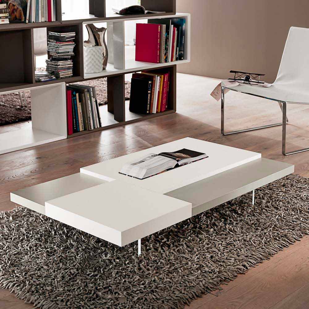 transparent polymethylmethacrylate feet. In any living room, the presence of a coffee table is essential which, in addition to representing a practical and functional support surface, gives harmony to the furniture and completes its aesthetics thanks to captivating and original lines and shapes. This piece of furniture embodies all the fundamental characteristics of a perfect coffee table, proving to be an excellent idea for those who love to decorate their spaces with elements with a simple but impactful style. The particular shape of the tops placed at different heights plays an important role in the design of the product as it offers an exclusive play of contrasts. Furthermore, the