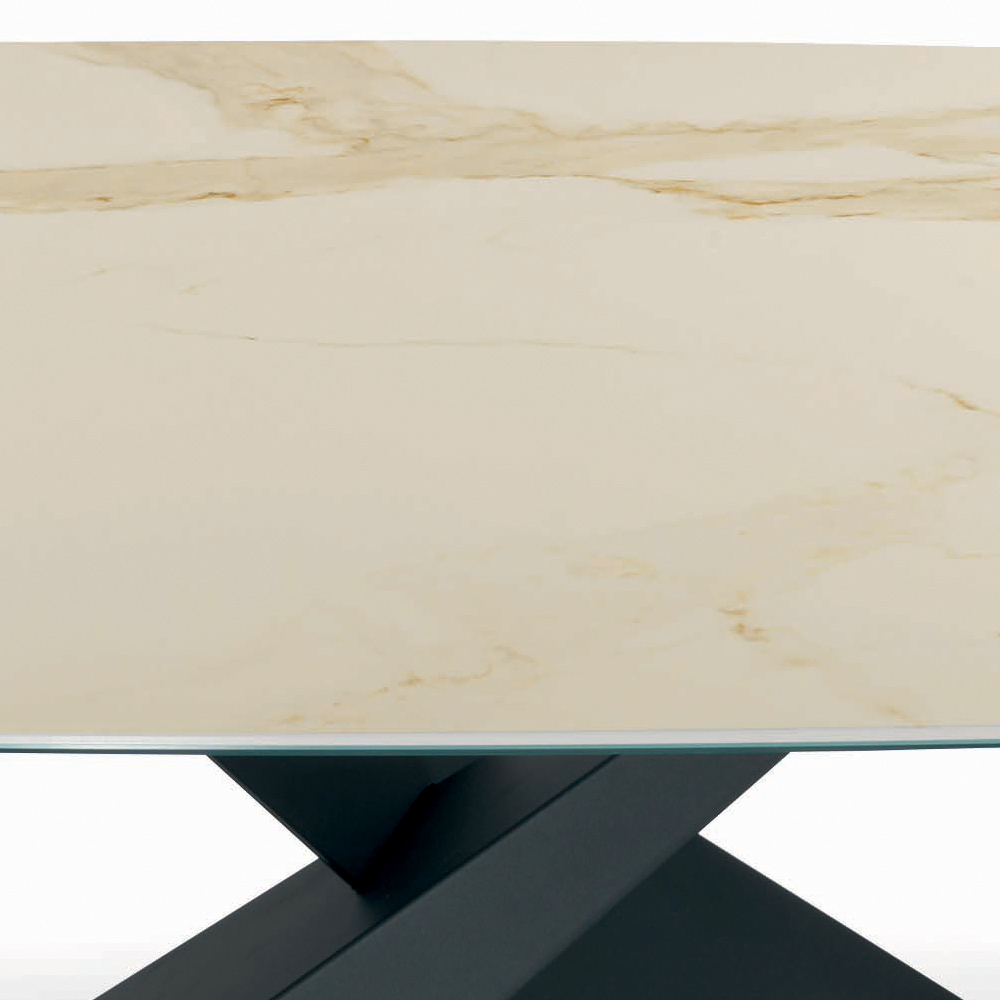 - polished veined gold calacatta (thickness 10 mm glass + 5 mm ceramic)