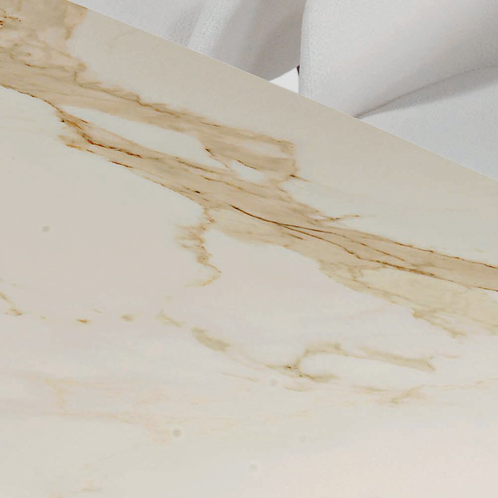 - polished veined gold calacatta (thickness 10 mm glass + 5 mm ceramic)