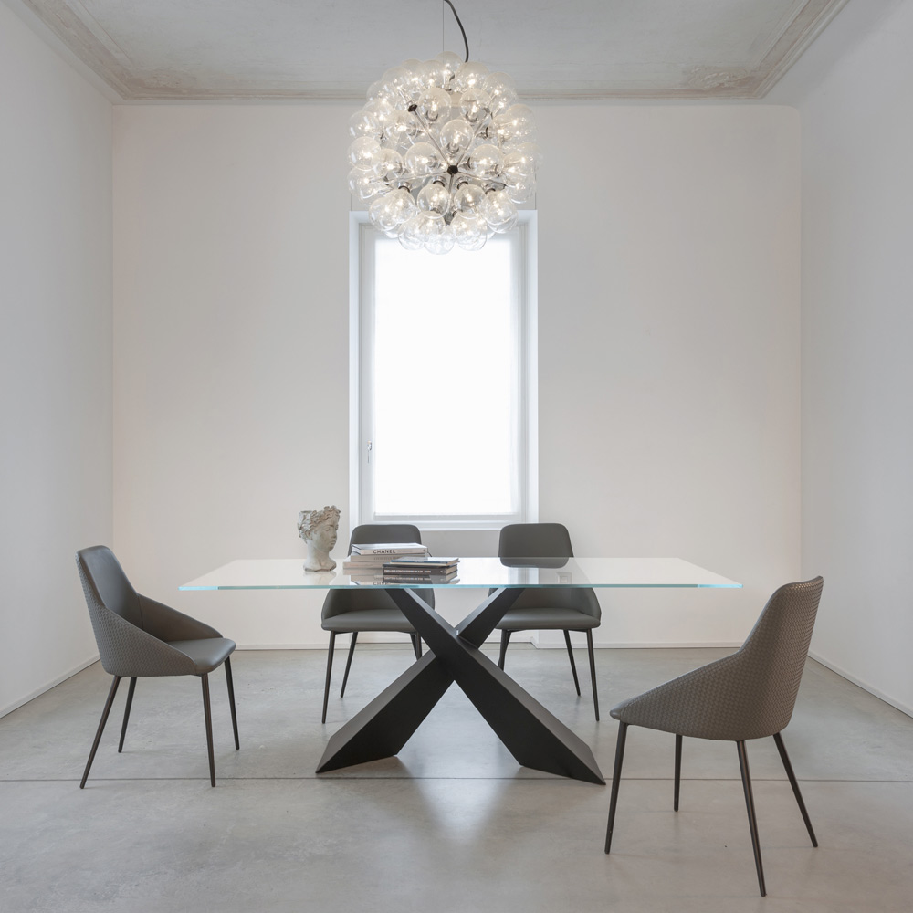 The transparent tempered glass top gives visual lightness and makes the table perfect for enhancing any type of environment, from the most classic to the most contemporary.