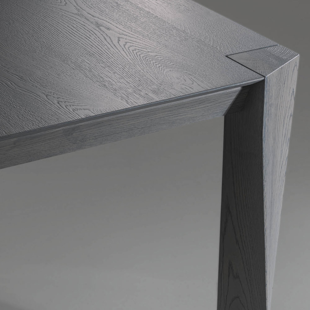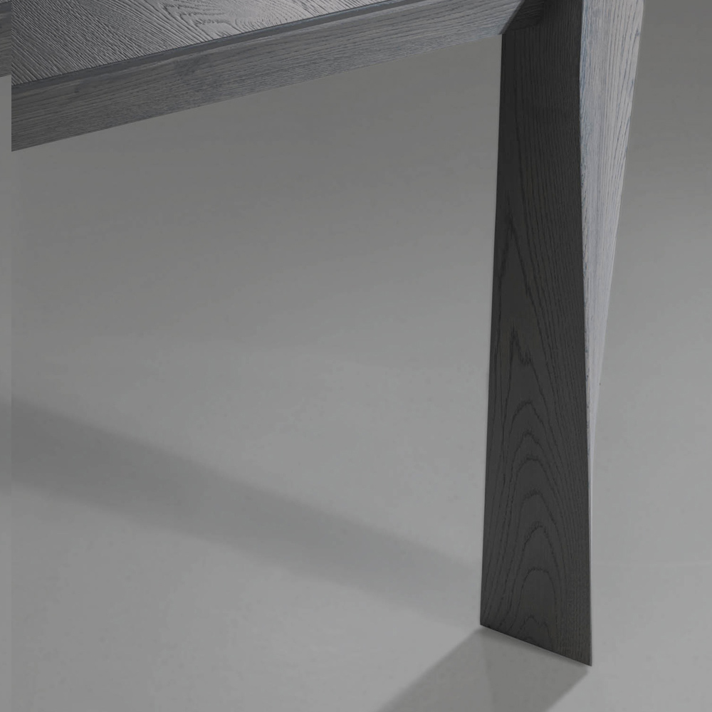 The table is shaped by futuristic shapes, which give light to the essence, giving it distinctive lines and perspectives. The robustness of the materials translates into a creative impulse forged by skilled Italian hands, reaching new qualitative and aesthetic goals. Furniture becomes a means to achieve the ideal personal space.