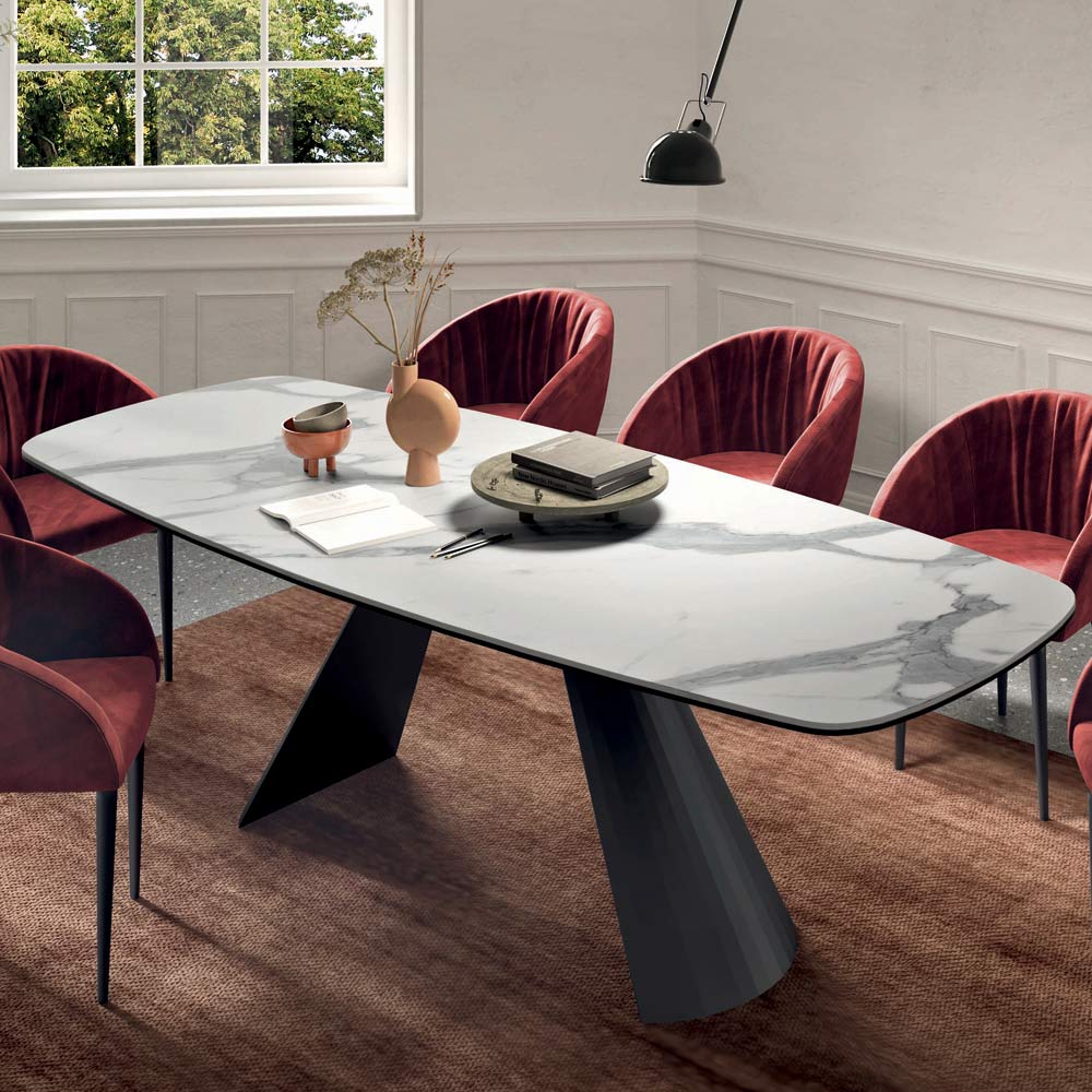 excellent quality Made in Italy . Thanks to the shape of the base and the available finishes, this table is the