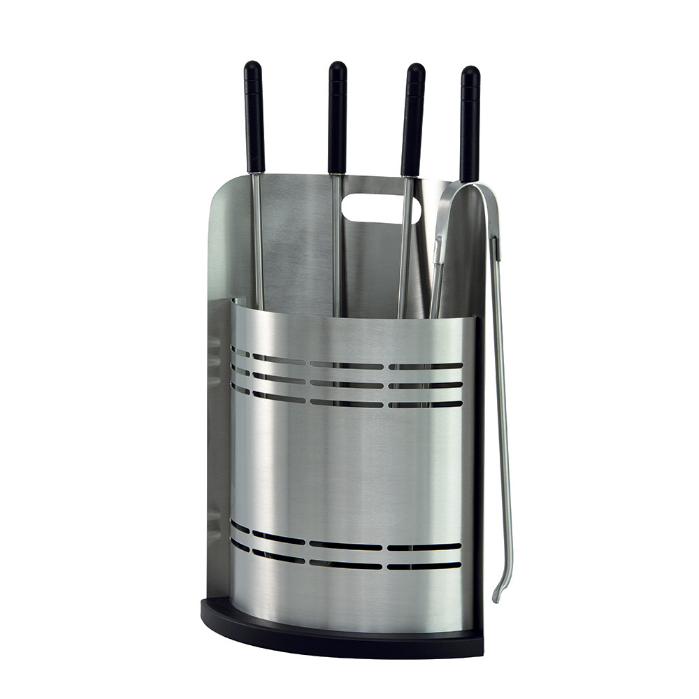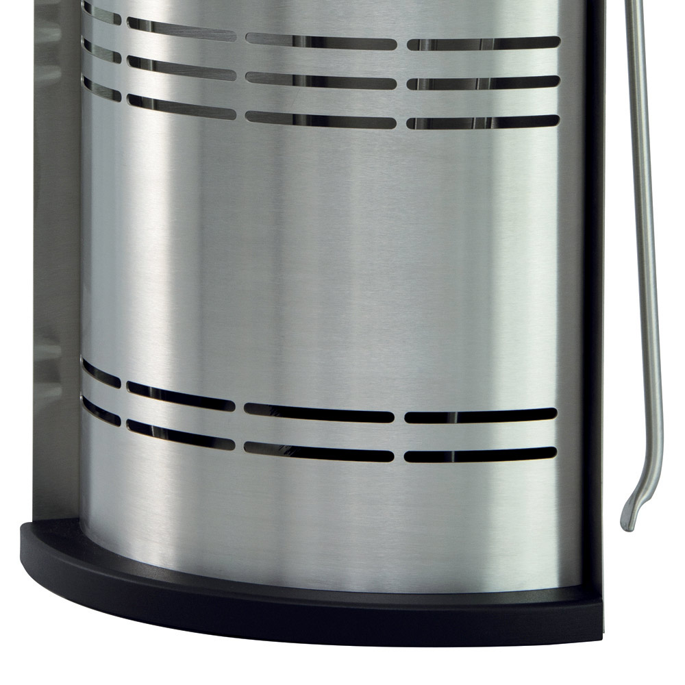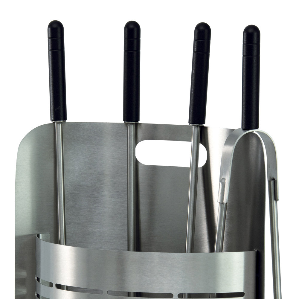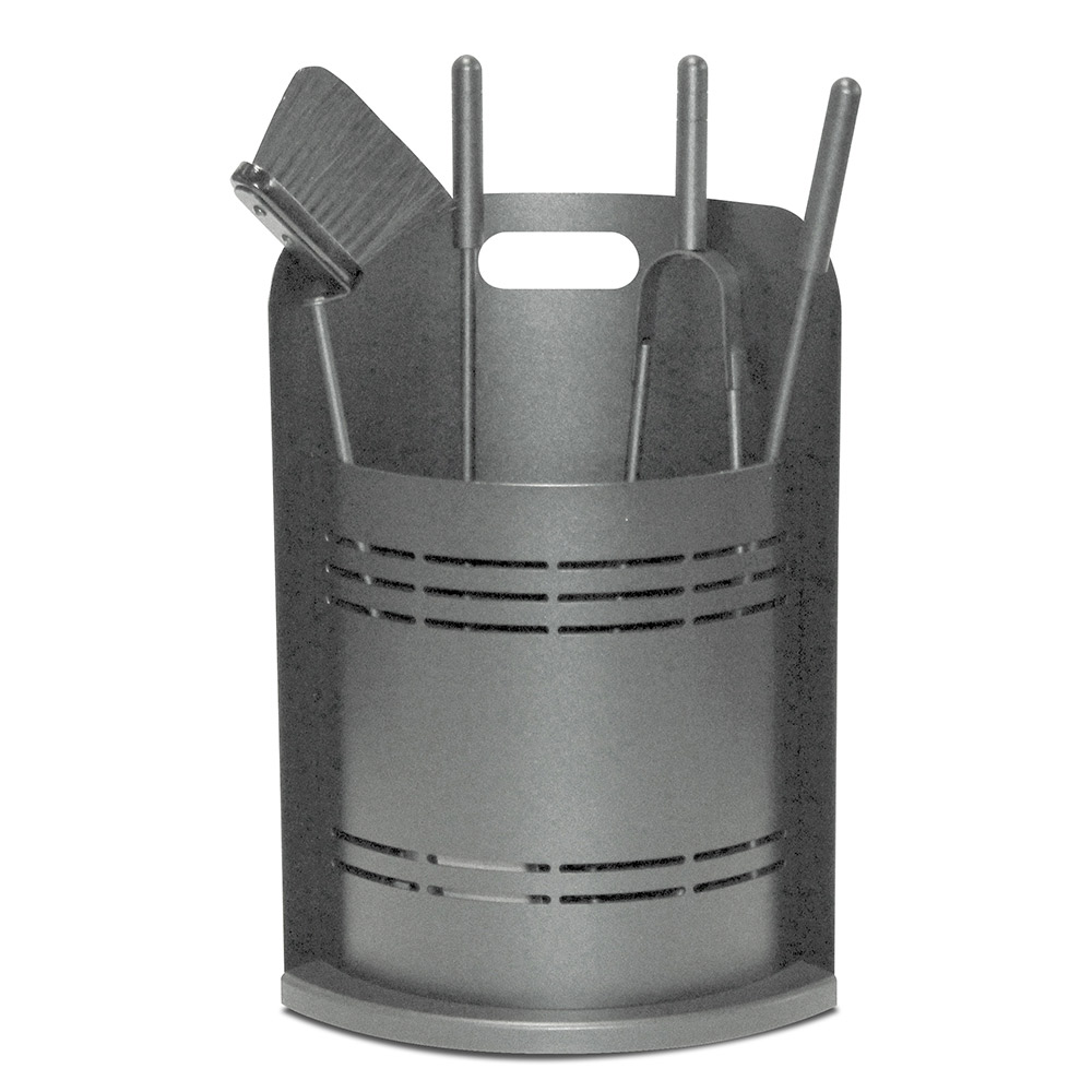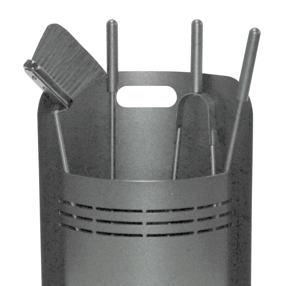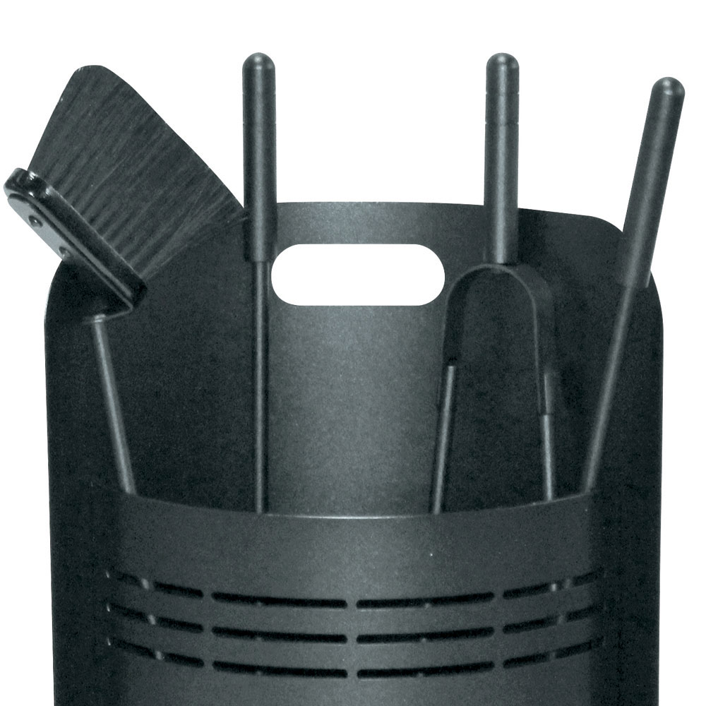 This fireplace tool holder is ideal for those looking for a touch of contemporary design . Its cylindrical shape is elegant and space-saving, while the horizontal slots not only create an eye-catching visual detail but also ensure adequate ventilation for gear.