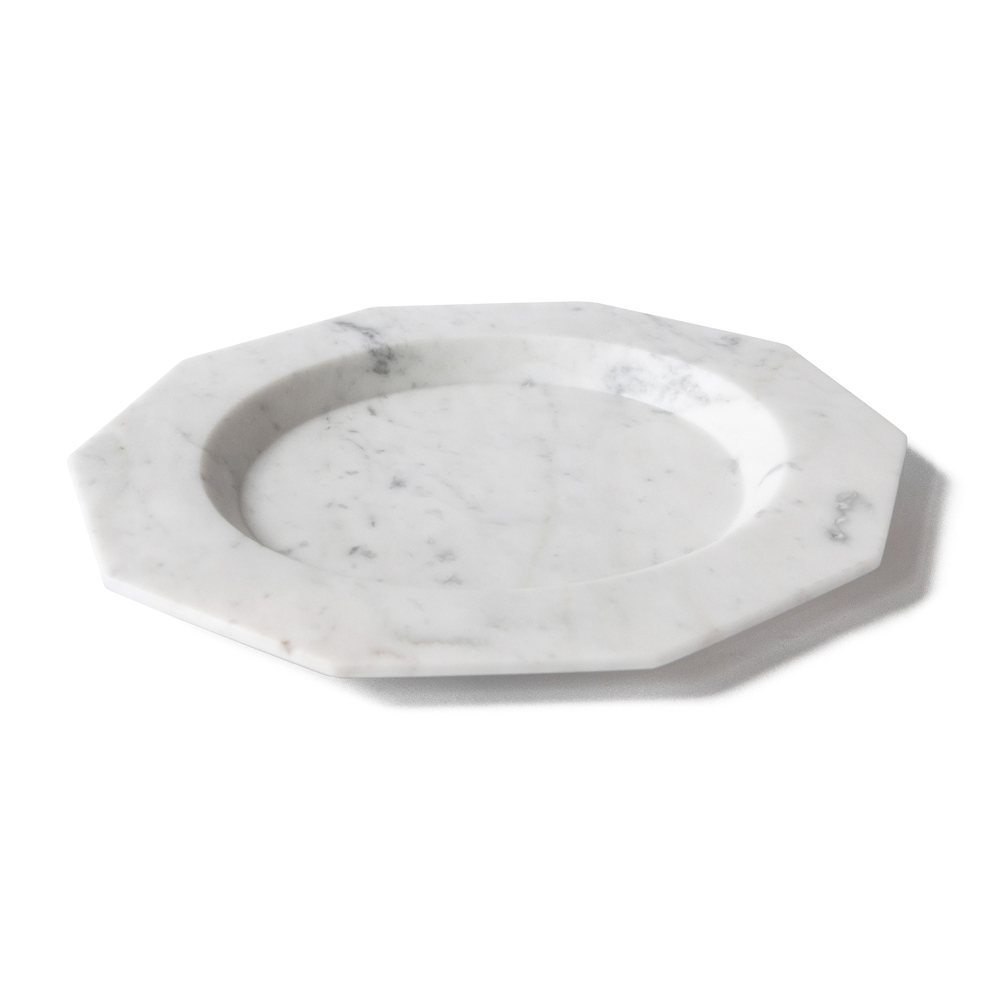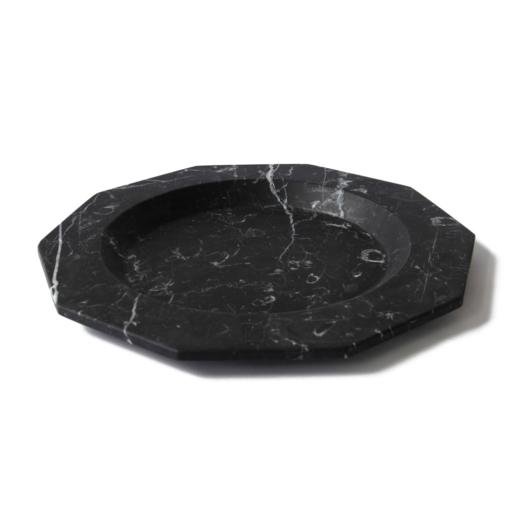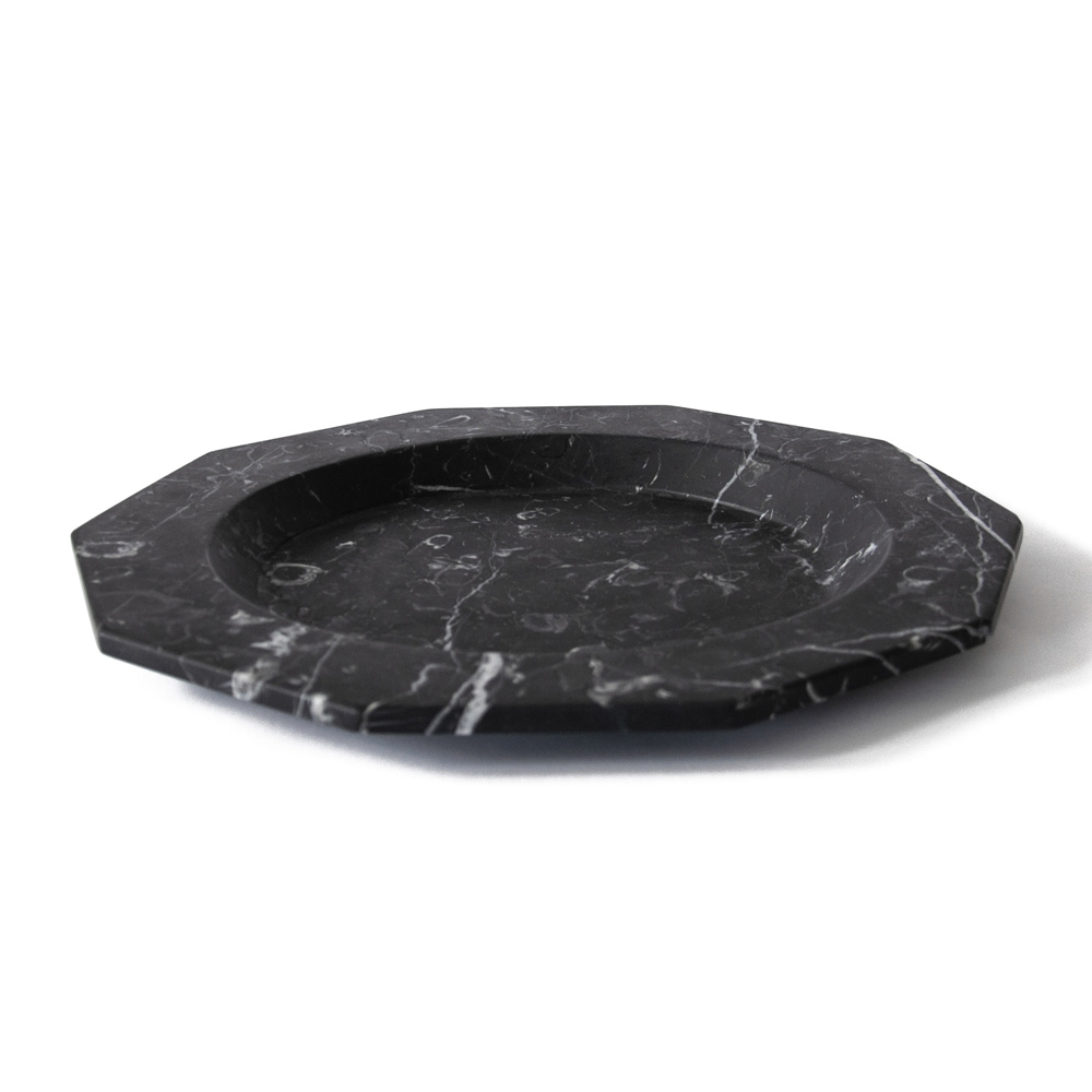 This flat serving plate is characterized by its decagon shape and the elegance it releases and which it gives both on the table and as a decorative object.