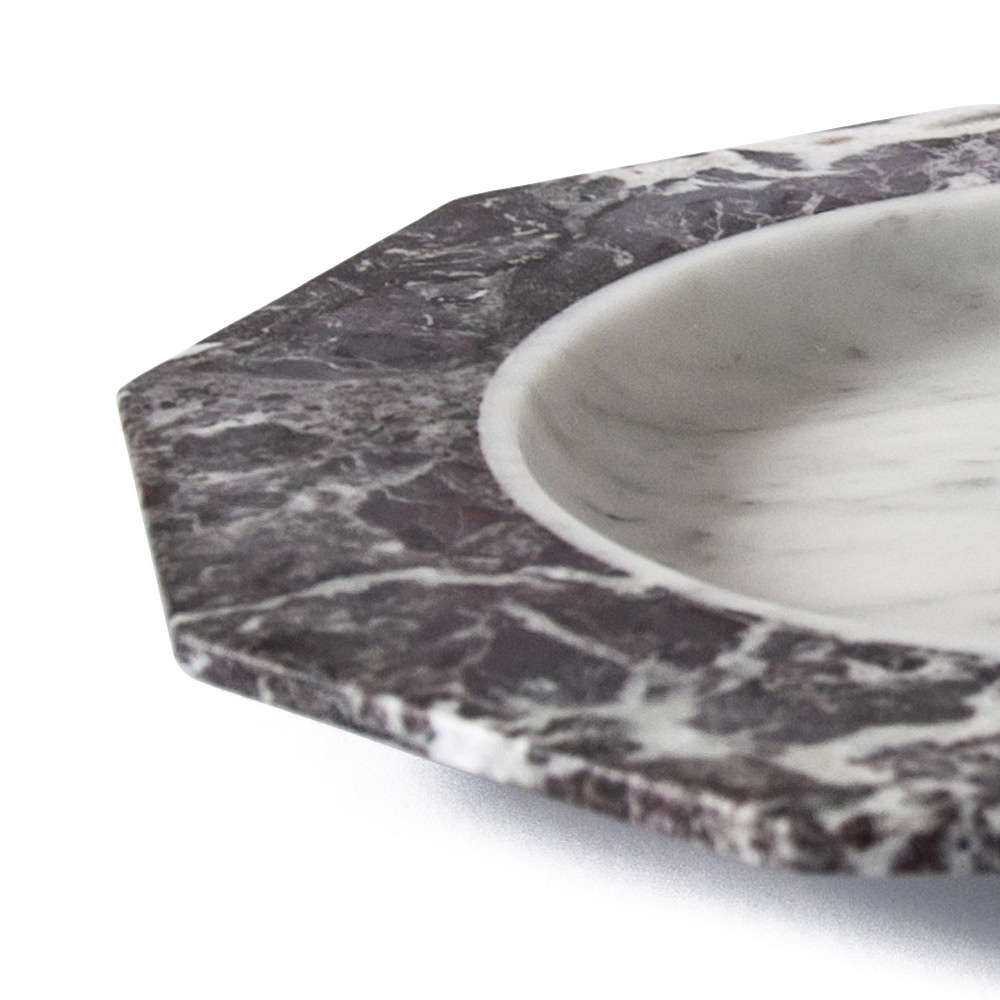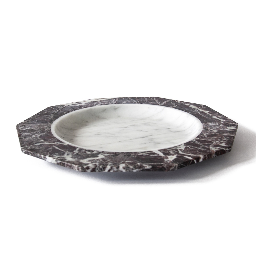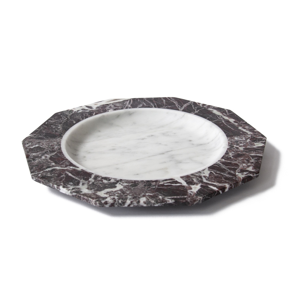 Satin plate in white, black or white and red Levanto marble made in Italy.