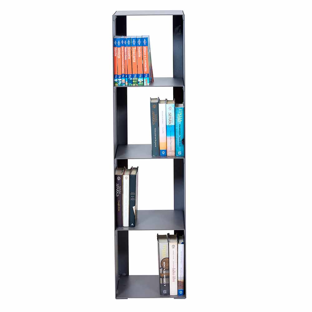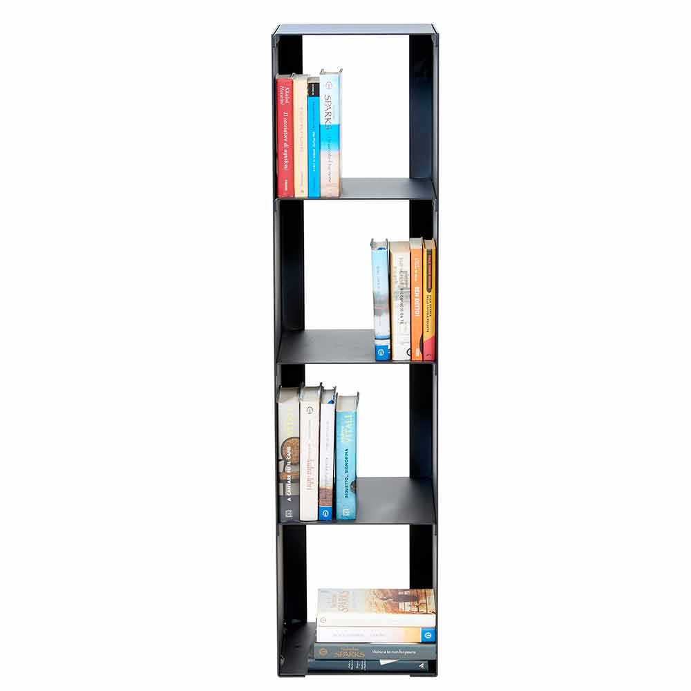 It has a simple and original design. The welded shelves allow the support of books as well as other objects, souvenirs or photo frames.