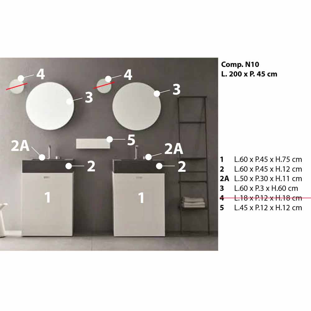 Bathroom furniture composition with a modern design with double column of made in Italy washbasins.