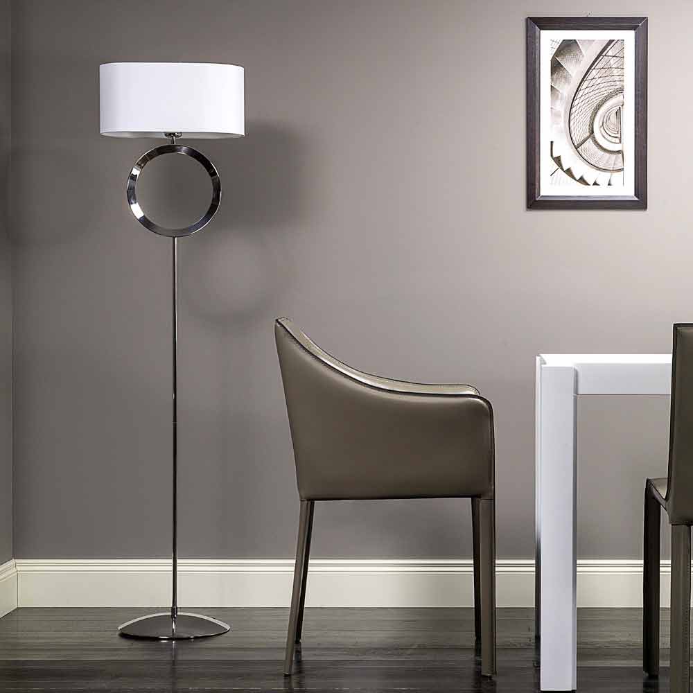 Moon is a floor lamp with a modern design. The structure is made of steel, while the lampshade is white. Thanks to its versatile design it can be placed in any environment, from the home to the office.