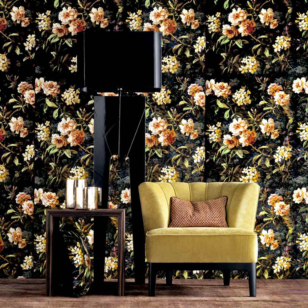 The Zarafa floor lamp is made of a black lacquered solid wood structure and a black satin fabric hat.