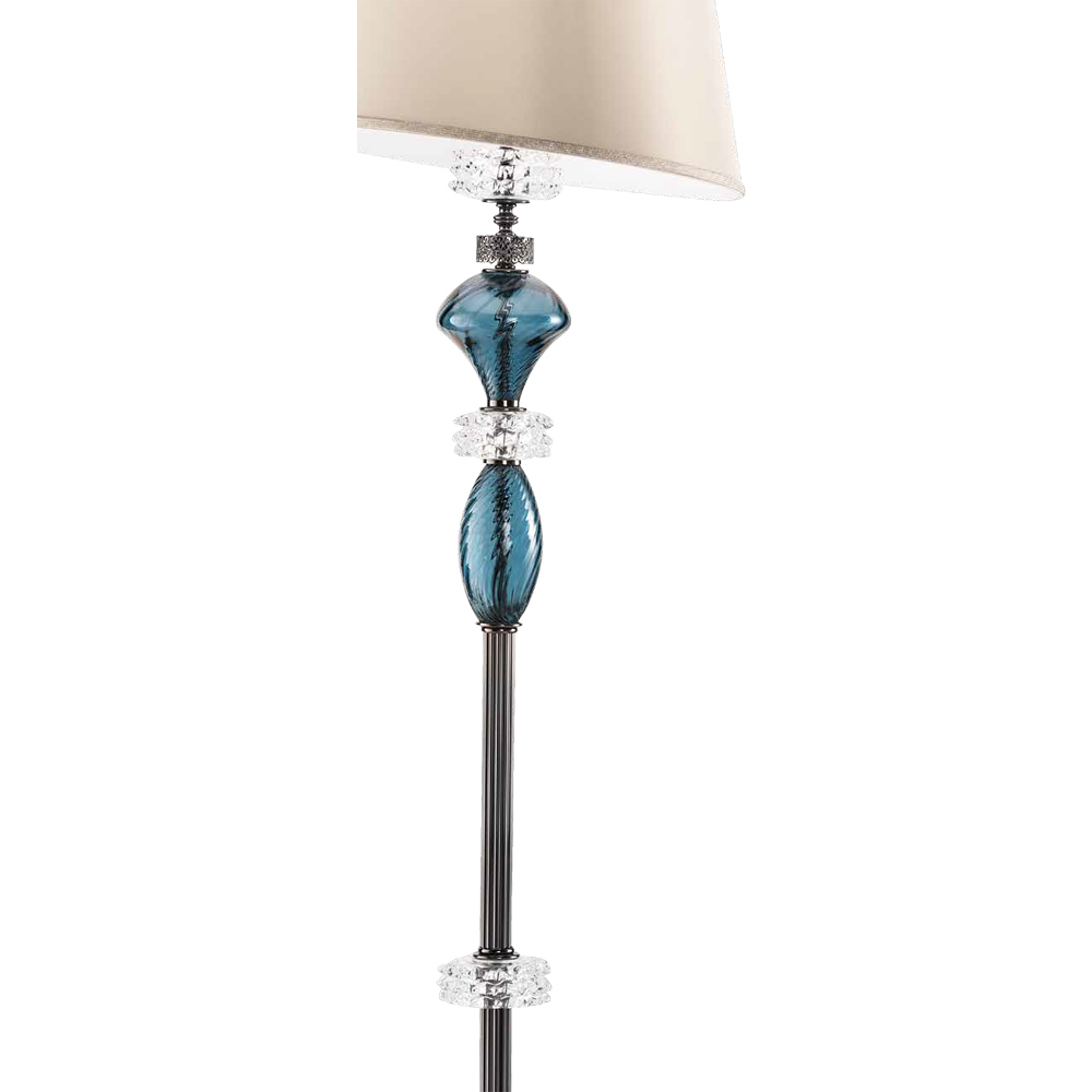 Floor lamp in handcrafted glass and metal with lampshade, Italian luxury.
