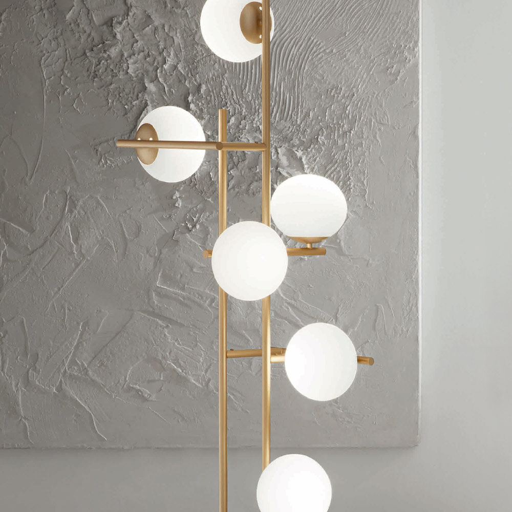Floor Lamp with LED in Gold Painted Metal and Blown Glass - Ailanto