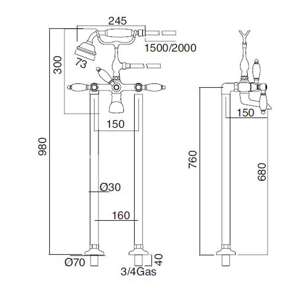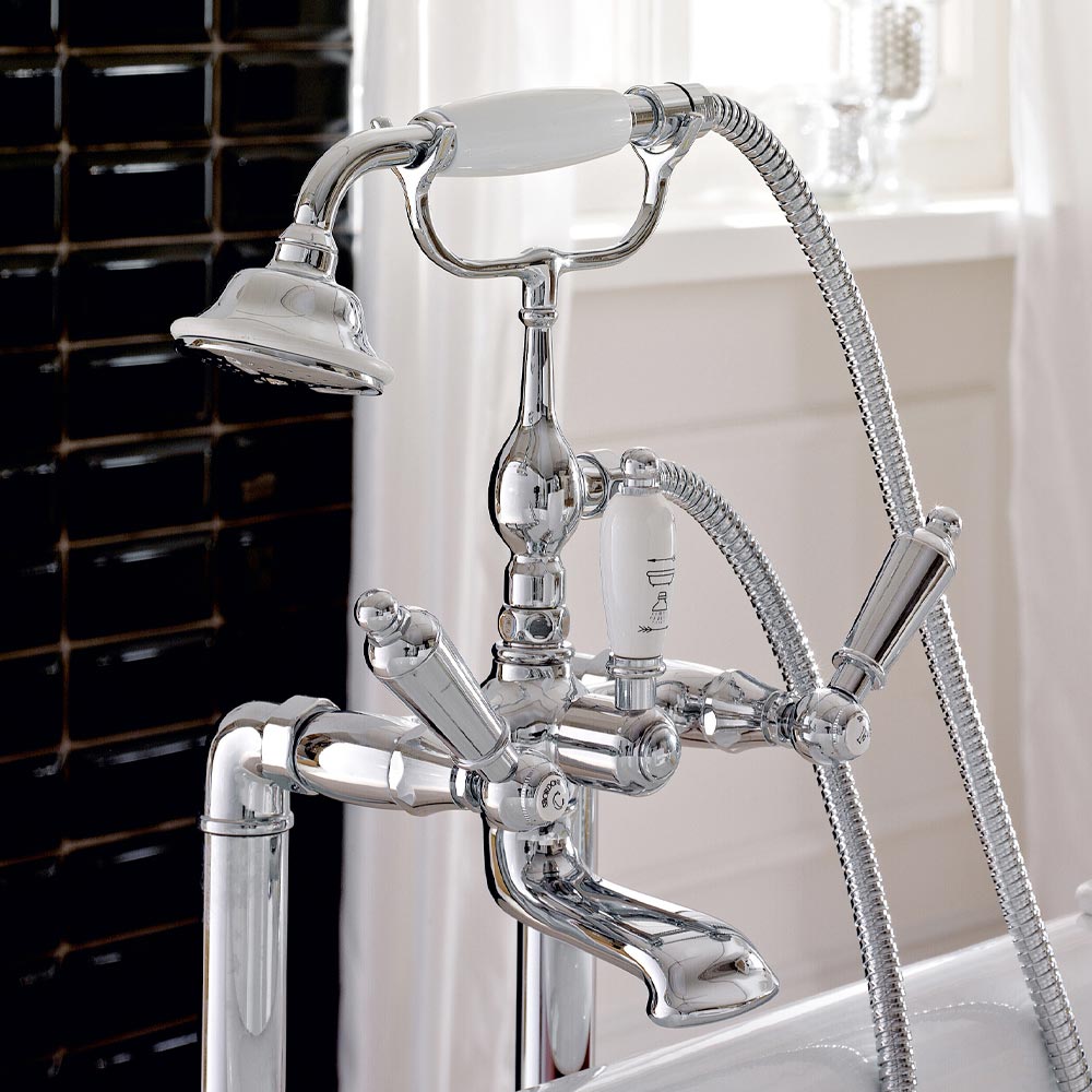 Floor-standing bathtub fitting with levers in classic style, luxury item made in Italy.