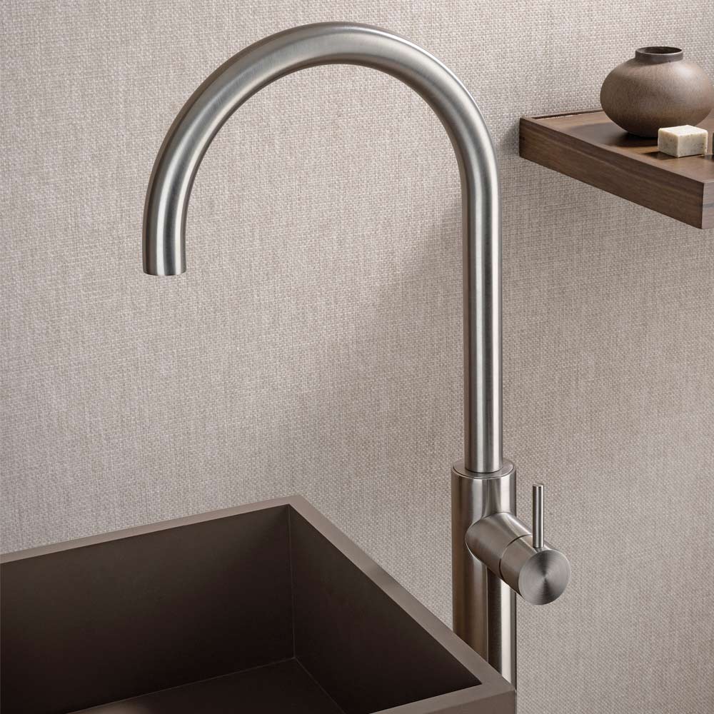 Cleaning: To keep your taps shining, dry any water deposits that could turn into limescale with a soft cloth after each use. Limescale residues form especially in corners and joints. To remove them, use a delicate detergent sprayed onto a cloth and NEVER directly onto the affected area. Wash the surfaces with warm soapy water, rinse thoroughly and then dry thoroughly with a soft cloth following the direction of the brushing.