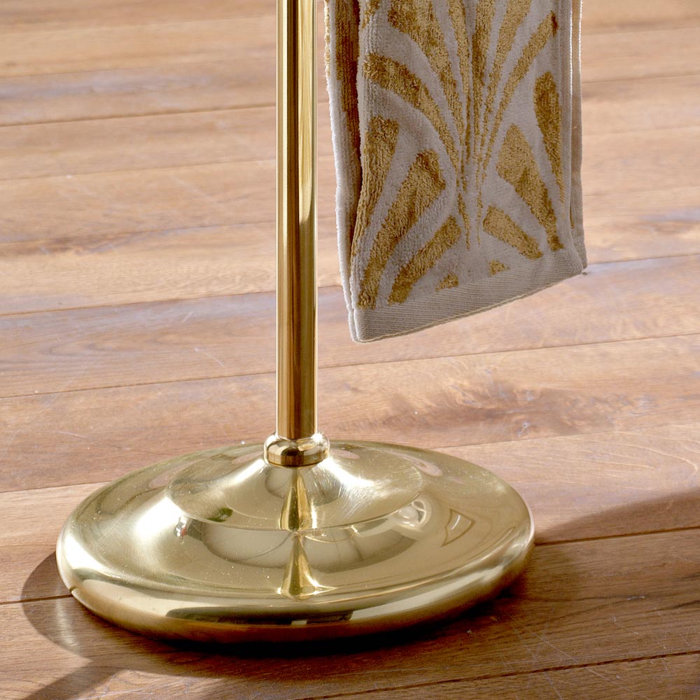 Floor towel holder with soap dish in brass and ceramic produced in Italy, Rouen.