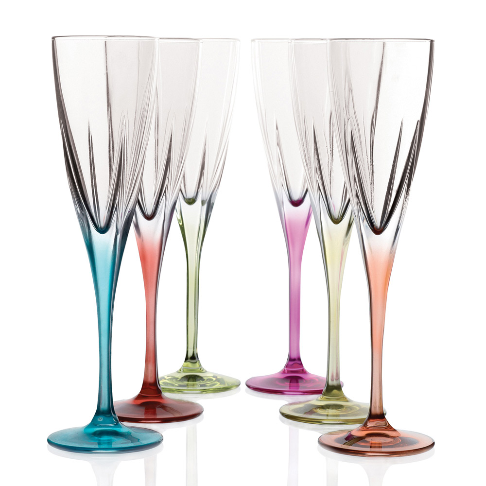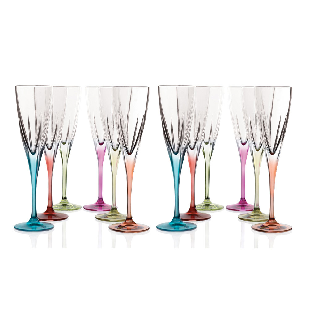 Flute Glasses in Colored or Transparent Ecological Crystal 12 Pcs - Amalgam