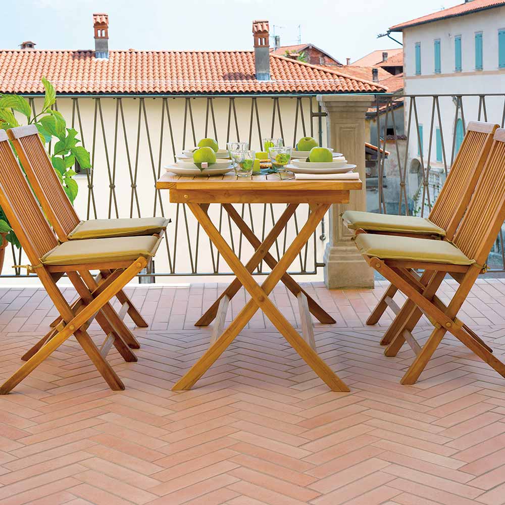 Teak is classified as the most valuable wood available for outdoor furniture. It is extremely durable, stable, resistant to atmospheric agents, fungi, attacks by parasites and insects. Contains high levels of natural oils which make it resistant and limit moisture absorption. Over time, teak furniture exposed to sun, rain, humidity, etc. they generally tend to become silvery-grey in colour: this is due to a surface oxidation process which naturally protects the wood. This process is purely aesthetic and does not damage the structure or quality of the wood. The emergence of oil on the surface of teak furniture is a natural process: the oil can leak during the first months, more or less consistently depending on the environment in which the furniture is placed. The natural oils found in teak are what make it the best wood for outdoor furniture.