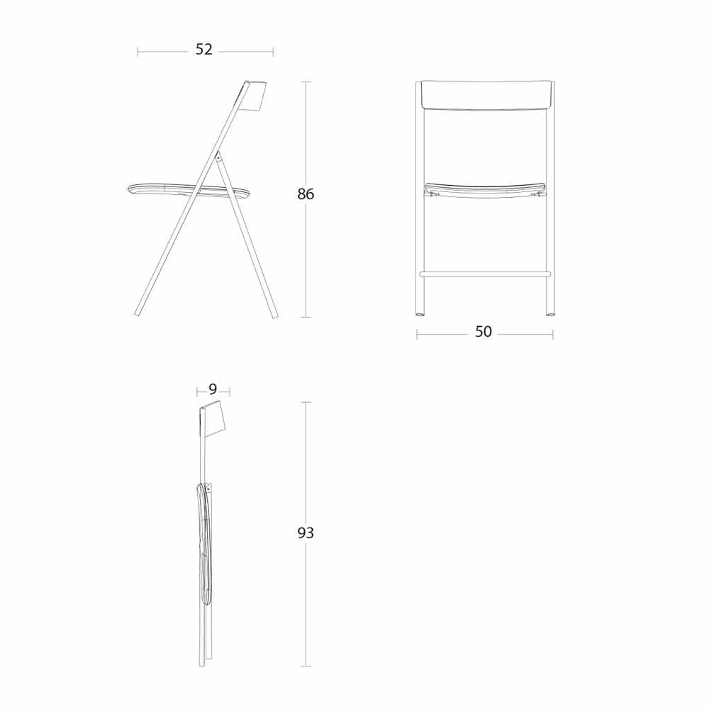 This comfortable chair is characterized by its simple and minimal design, classically inspired, functional and foldable to maximize space and use it according to need. Thanks to its essentiality, it can be combined with different furnishing contexts by virtue of a sober and refined design.