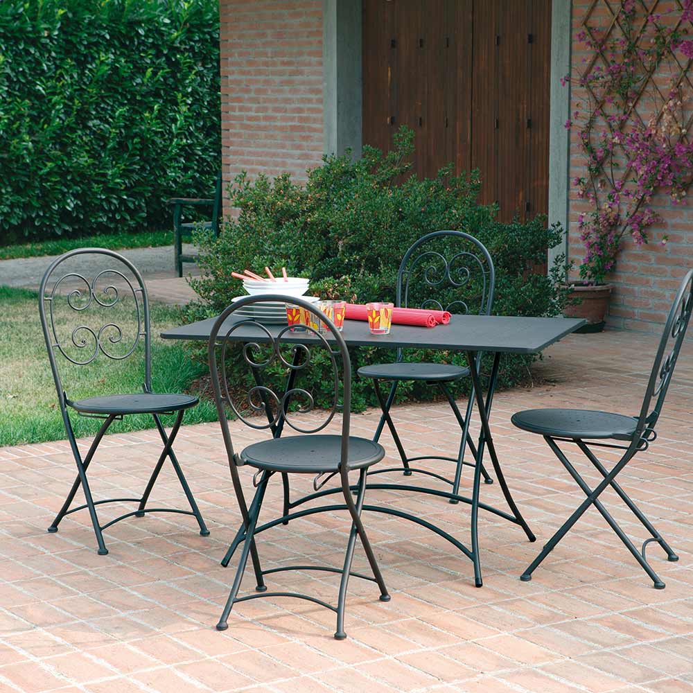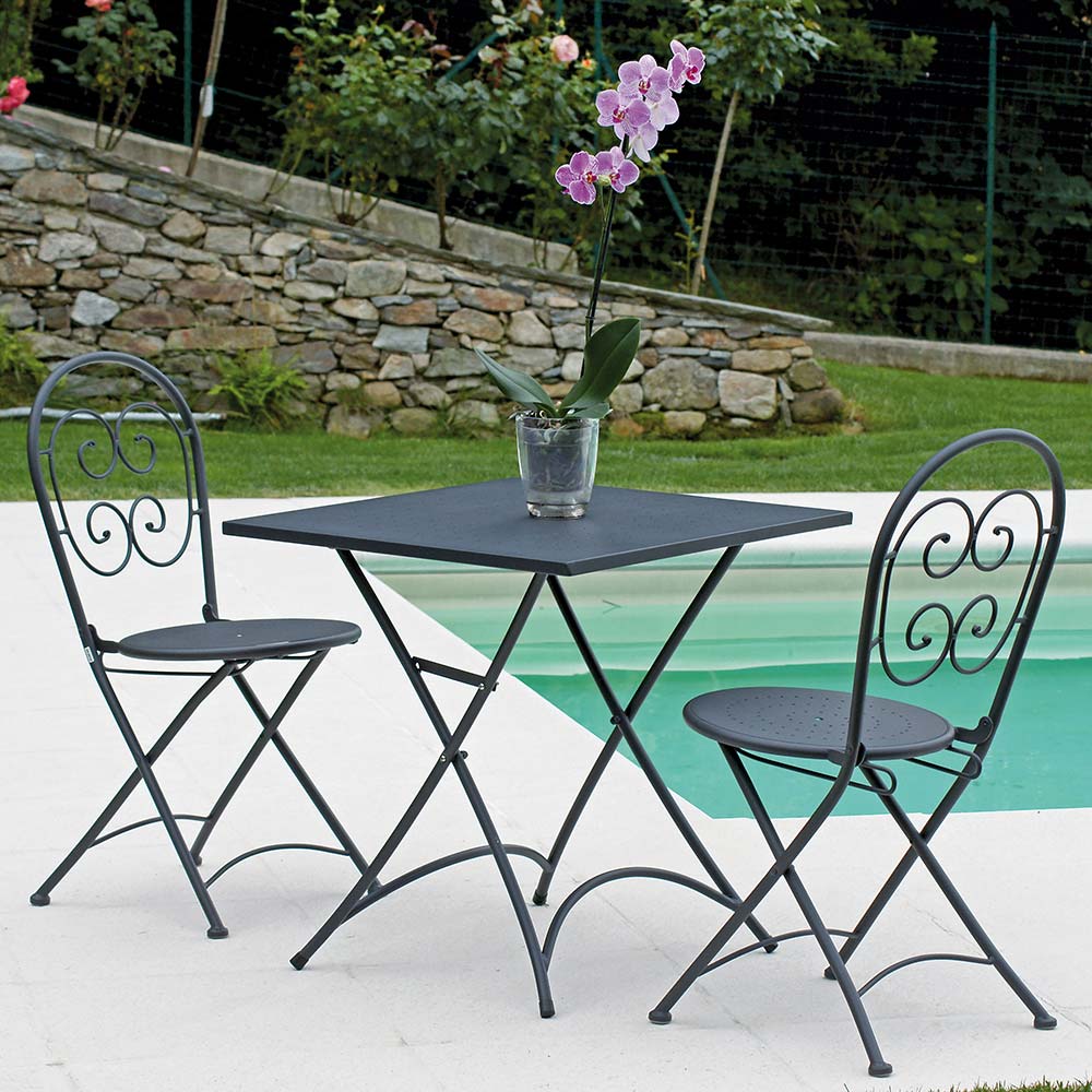Garden chairs made of anthracite gray finish iron with anti- rust treatment , ideal for furnishing your outdoor spaces with a touch ofunique styleand astrong modern personality.The simplicity of the shapes and the sober color nuance make it particularly versatile thanks to the small size, lightness and manageability of its structure. The result is therefore aunique product in its essentiality, capable of enhancing the surrounding space with anexclusive and fascinating touch.