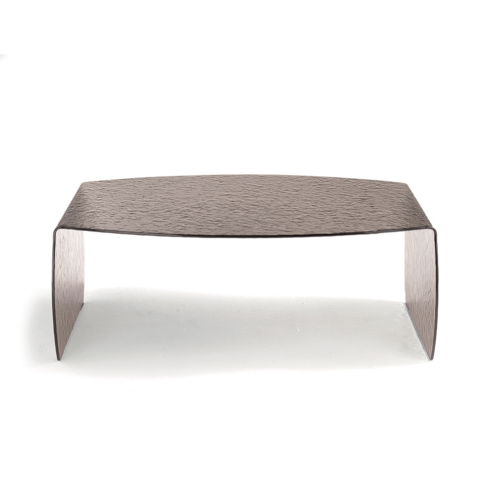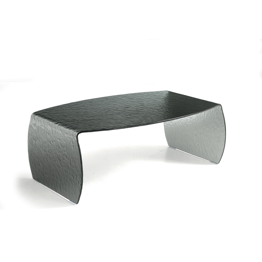 Made in Italy designer coffee table in curved glass with a hammered effect