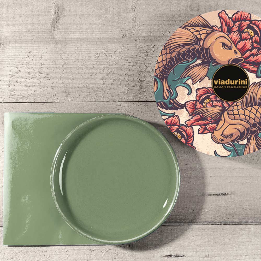 Bathroom accessories in refractory clay with green enameled interior Made in Italy.