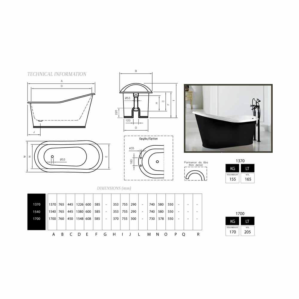 • Solid and unalterable over time. Unlike acrylic, cast iron tubs have a high resistance to multiple factors; fire, shock, and chemicals.