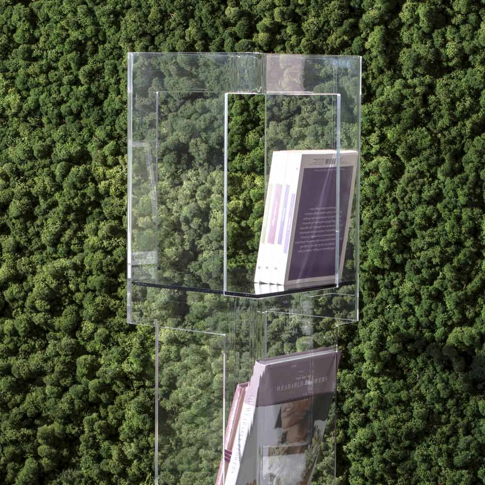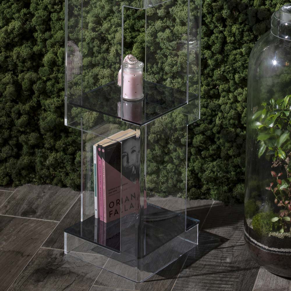 Freestanding bookcase in acrylic crystal 2 finishes and 2 sizes made in Italy.