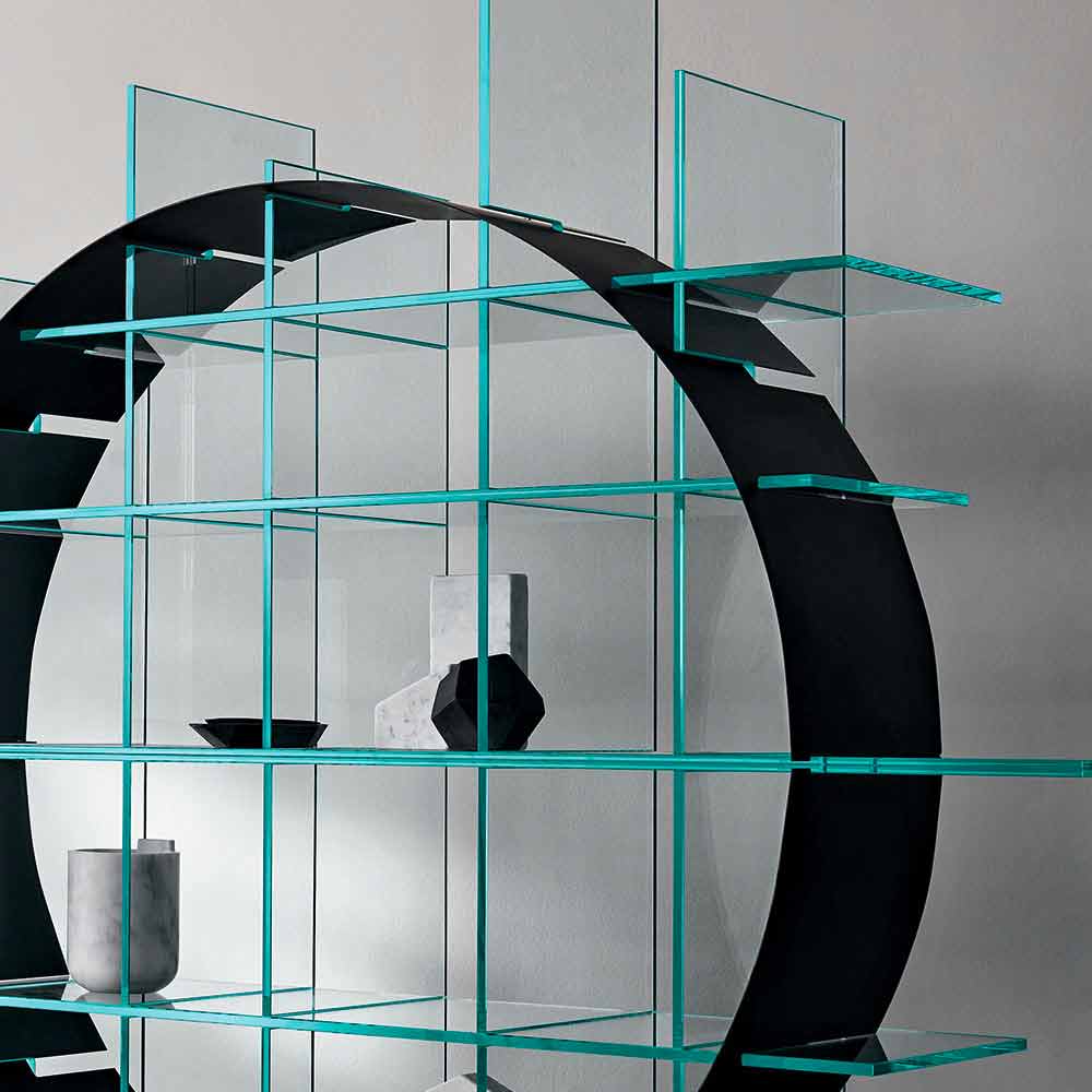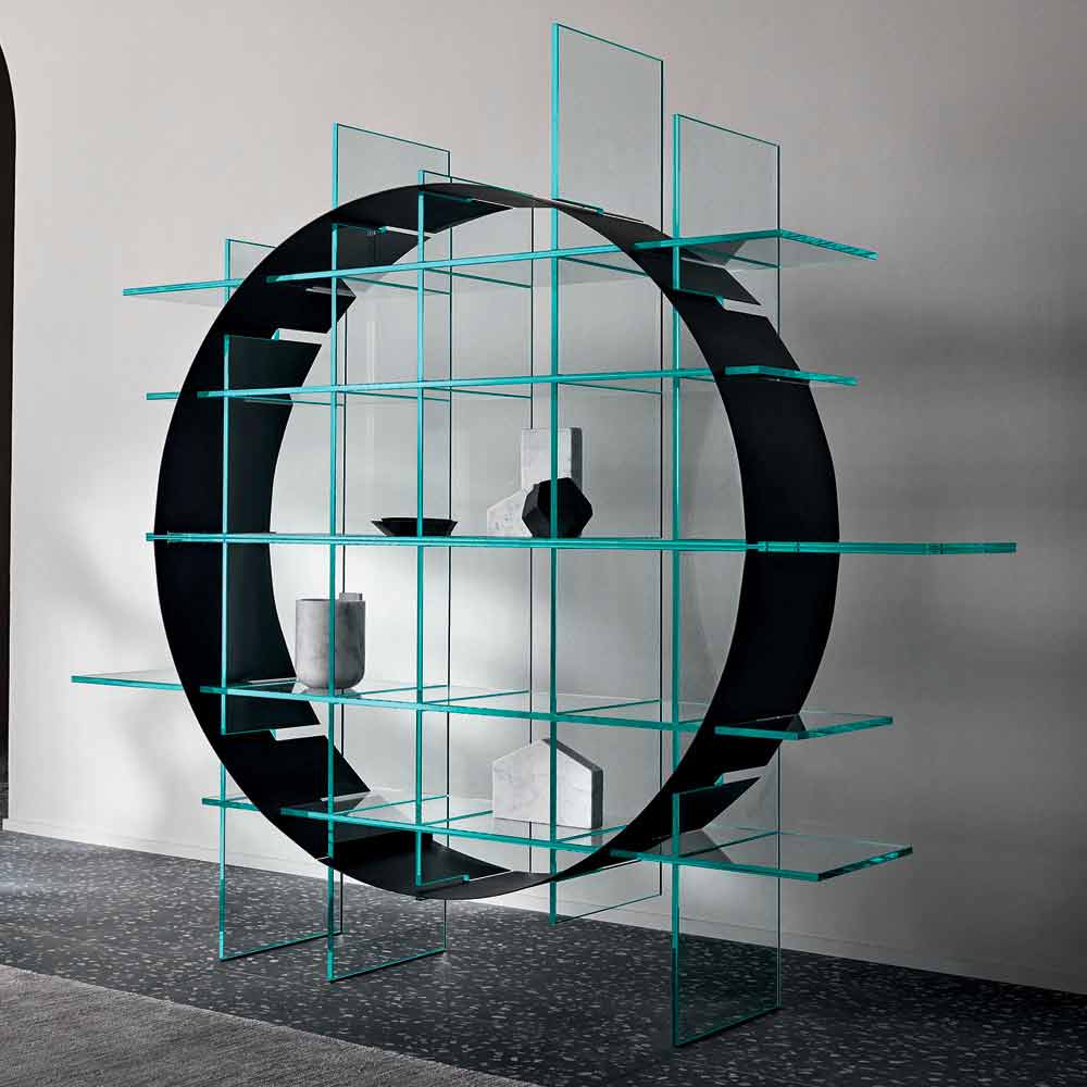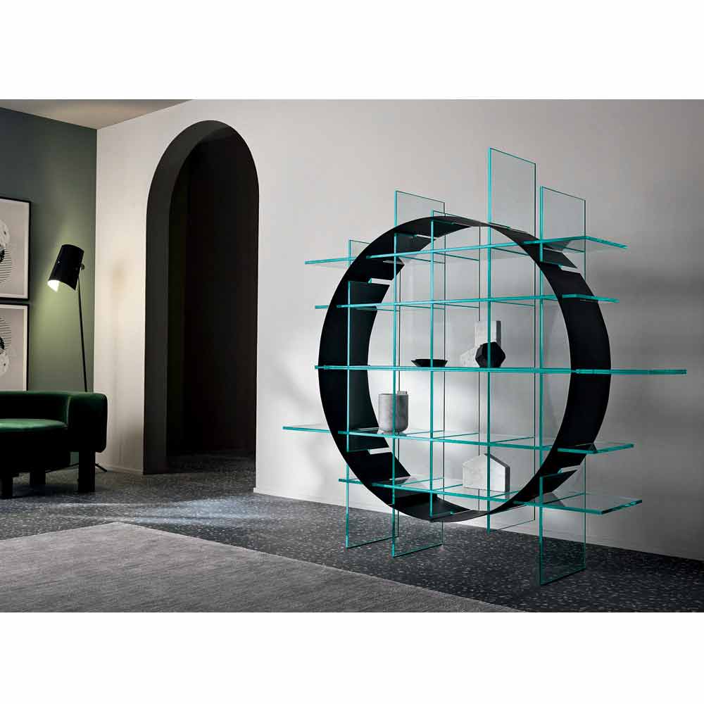 Freestanding Circle Bookcase in Extraclear Glass and Brushed Black - Marco