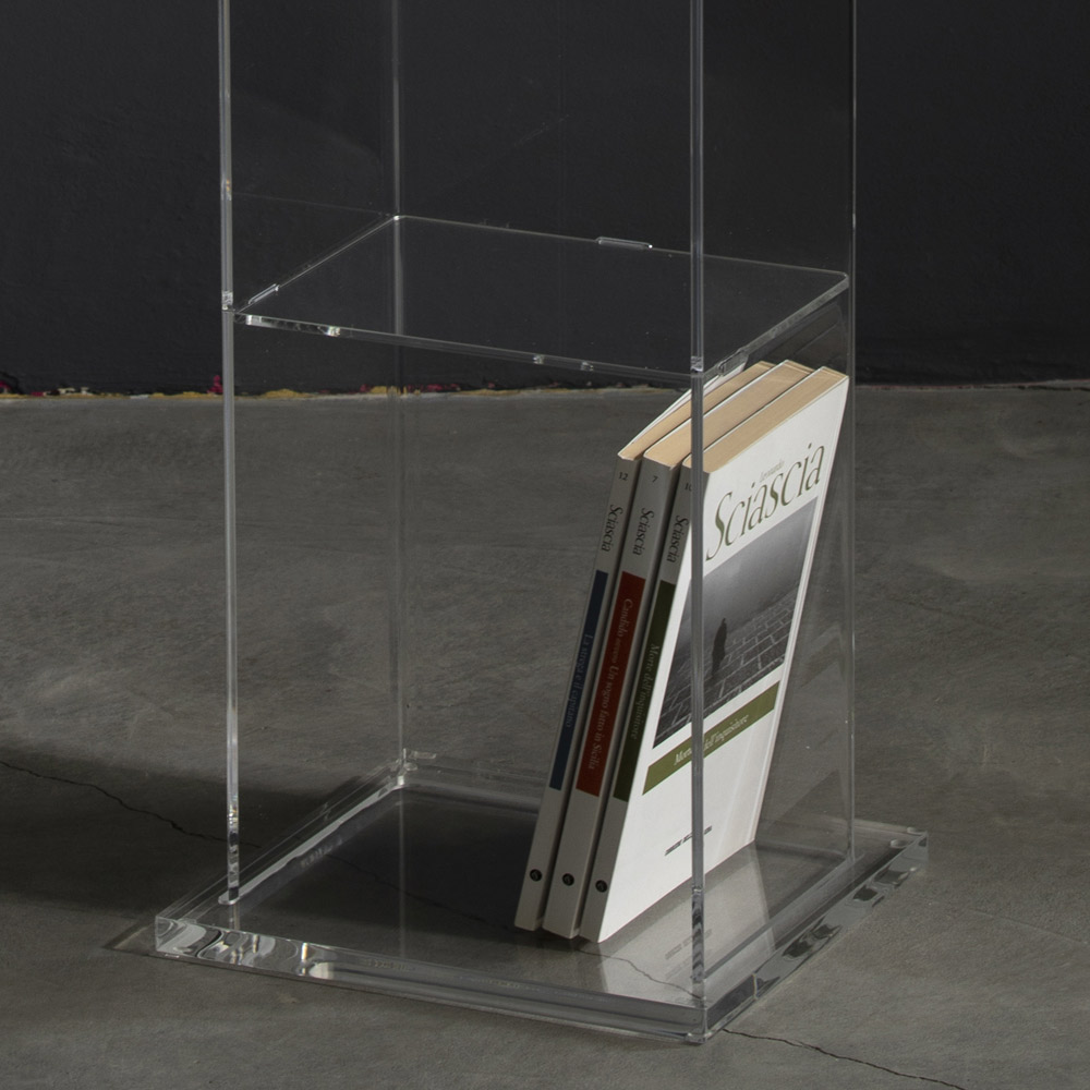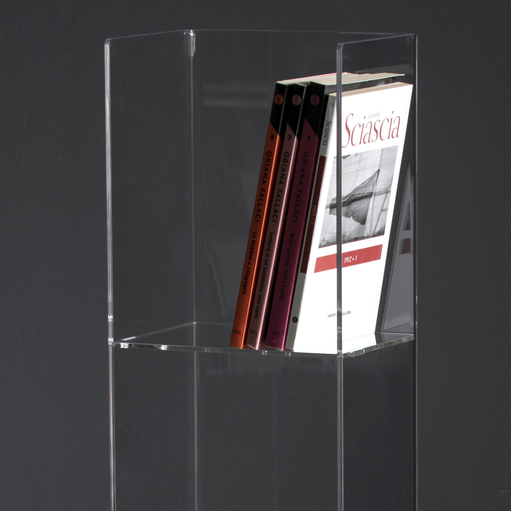 Freestanding bookcase in transparent acrylic crystal, design made in Italy.