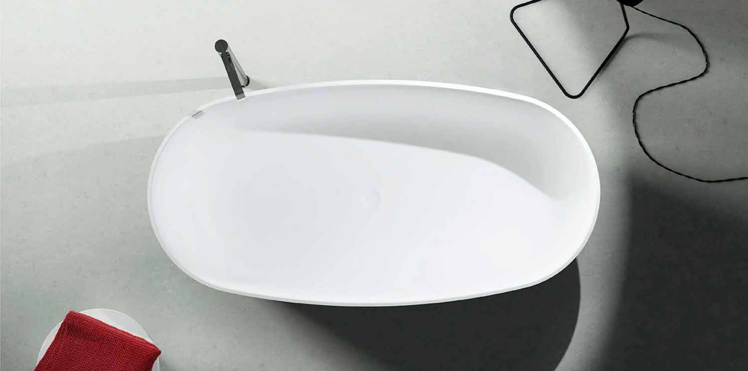 Dongo is a monobloc bathtub with freestanding installation in Solid Surface.