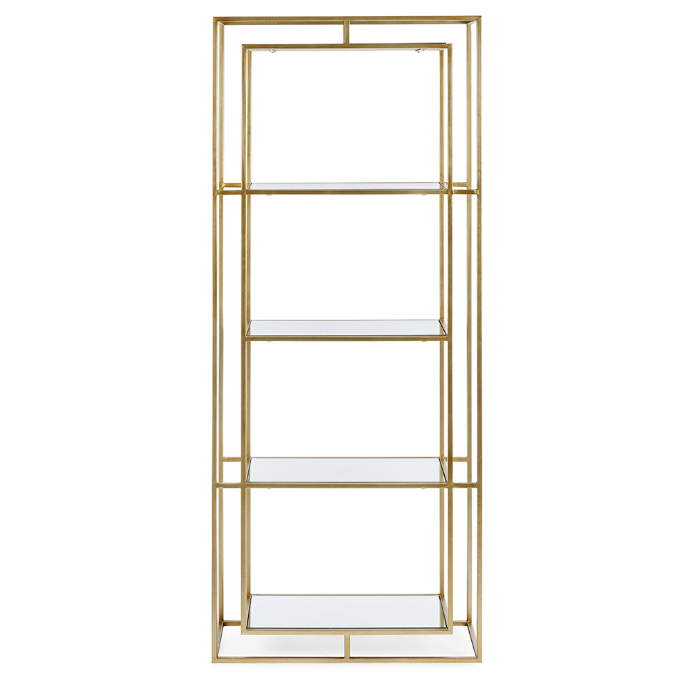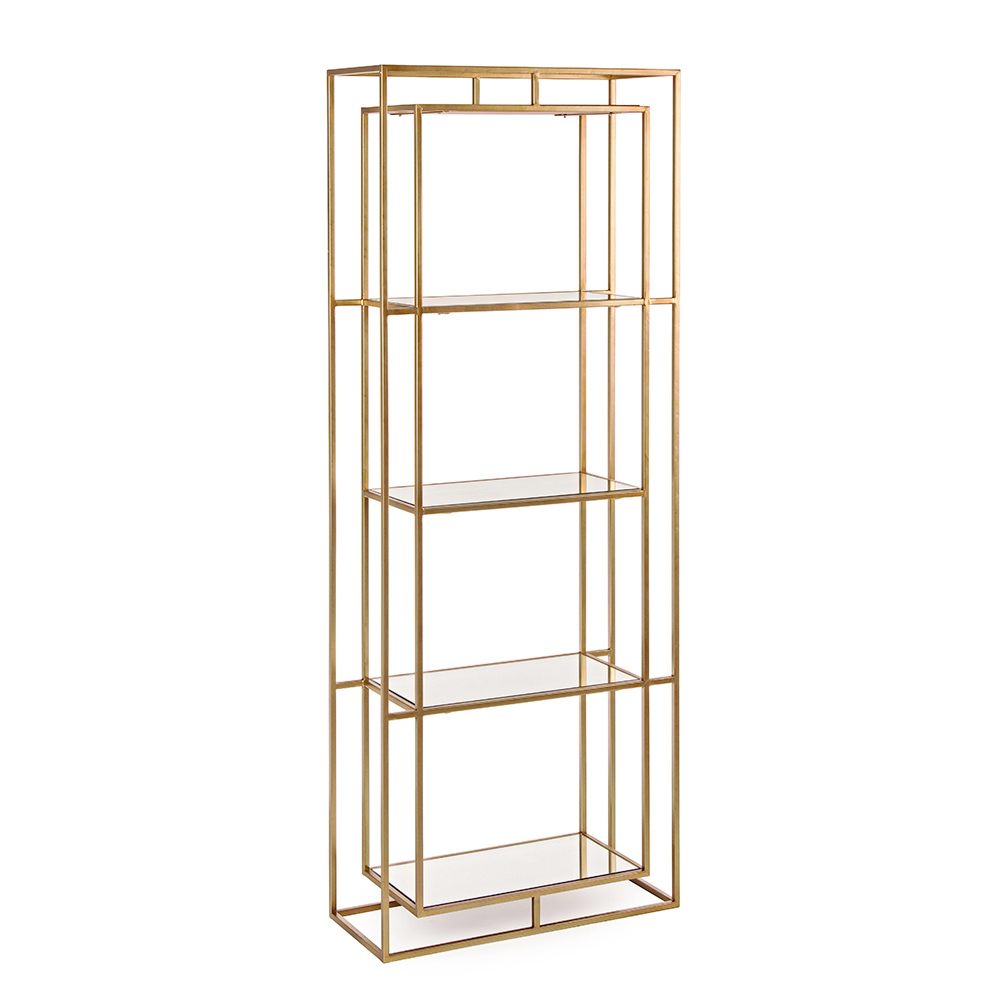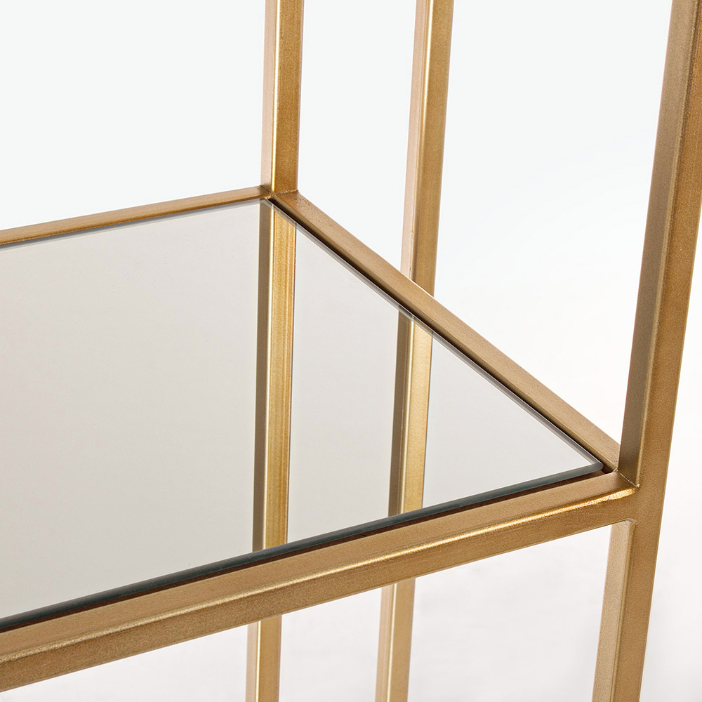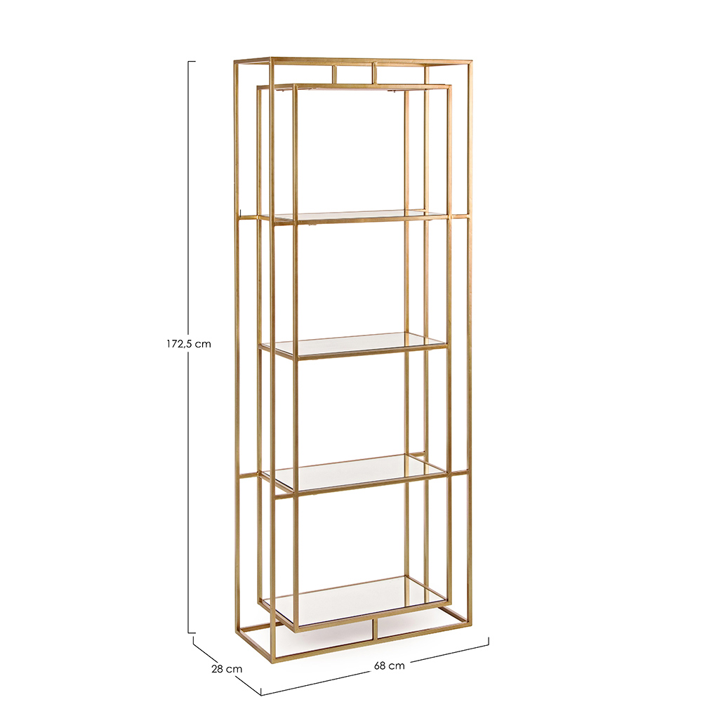 This freestanding bookcase features an epoxy powder coated steel structure and glass shelves measuring 53.5 x 28 cm.