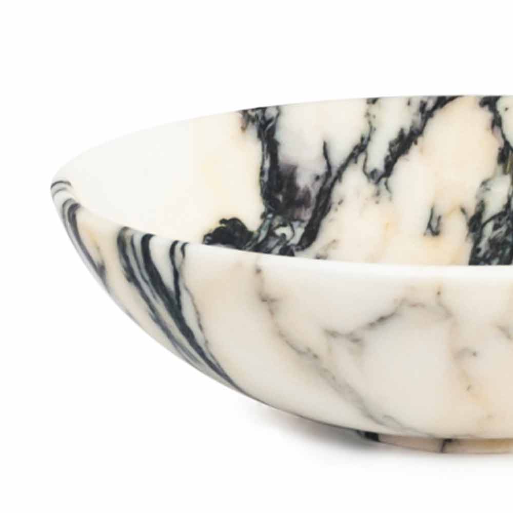 Round design fruit bowl in Portoro, Paonazzo or Marquinia marble Made in Italy.