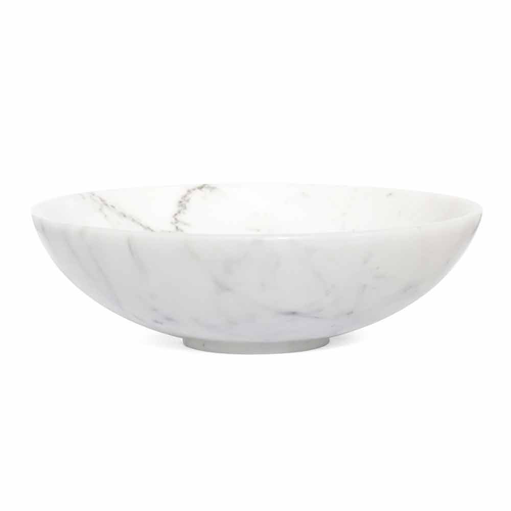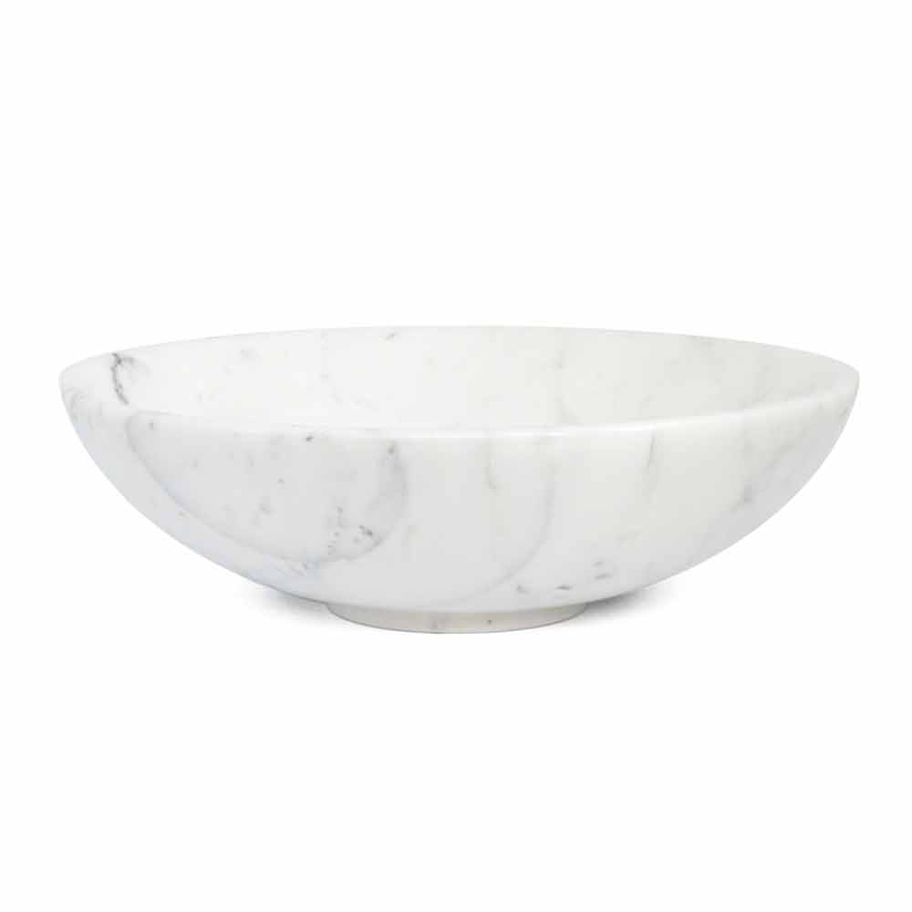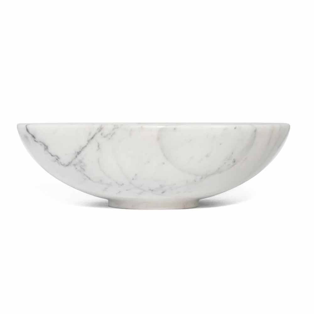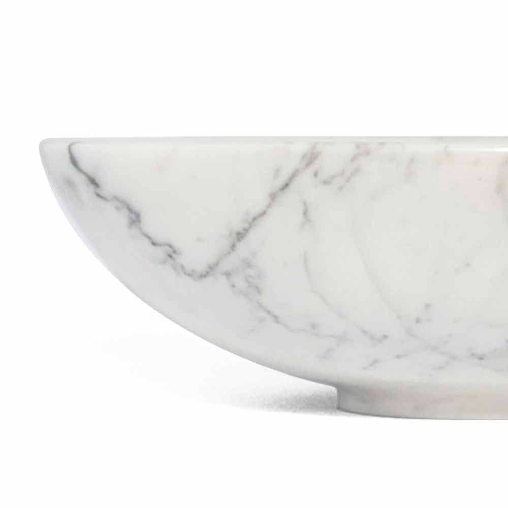 Round fruit bowl characterized by precious marble with which it is handcrafted by specialized professionals. It is a unique piece as each block of marble used differs from the others for veins and shades.