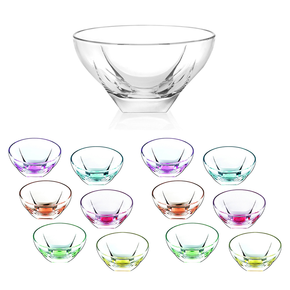 Dessert or fruit cup service in transparent or colored eco crystal, 13 pieces made in Italy.