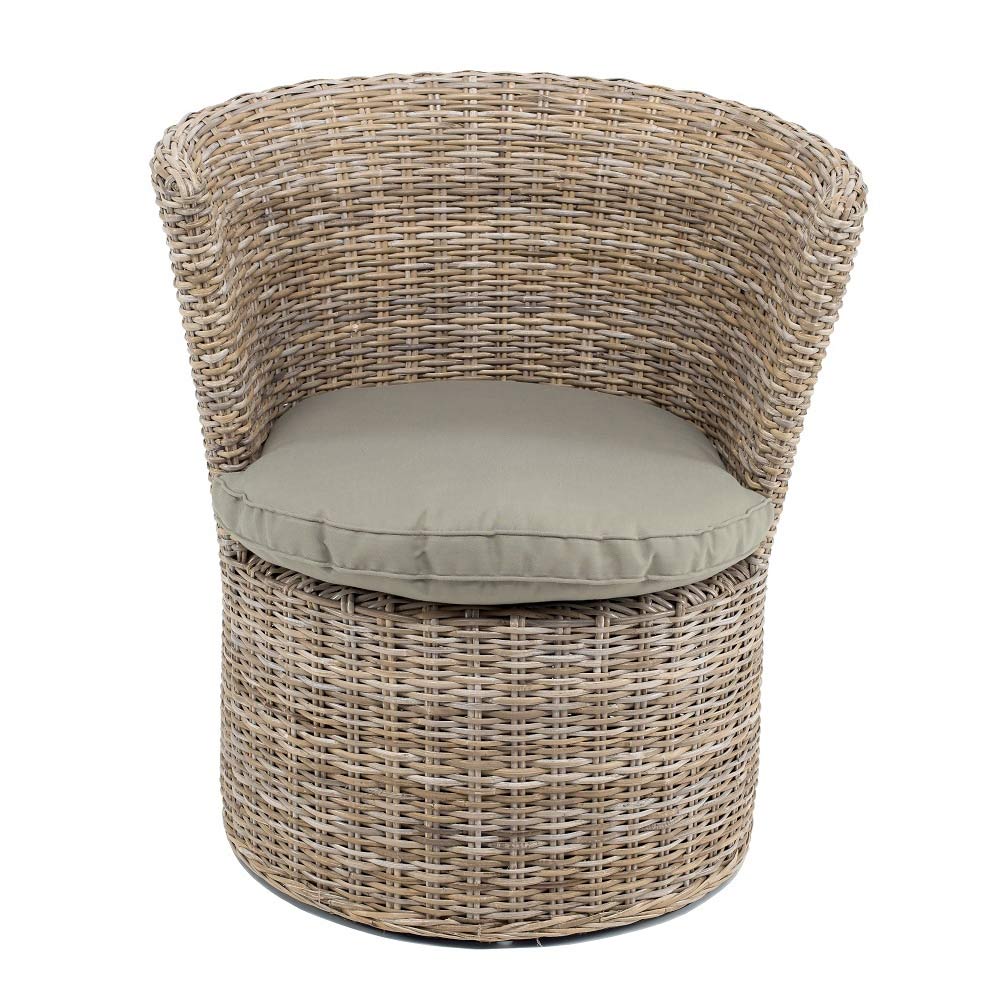 Outdoor armchair in kubu with seat cushion.