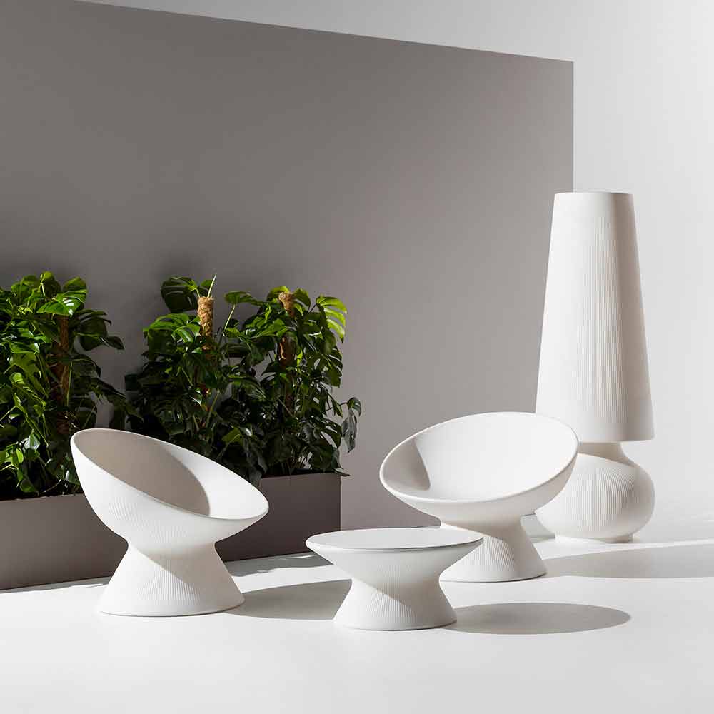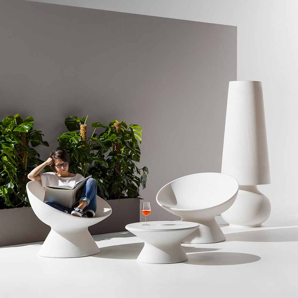 simple design conceived to create an extremely comfortable and welcoming seat and at the same time to characterize the indoor outdoor environment with an original object with a modern taste. Ideal to be used as a furnishing solution for gardens, terraces, verandas but also for contract environments where a