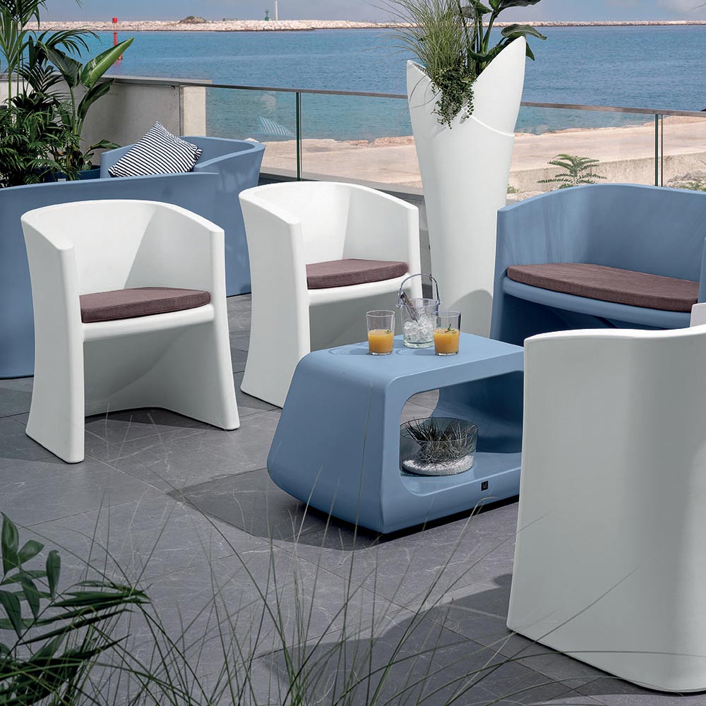 This outdoor armchair entirely made in Italy with a colored polyethylene structure is designed for those looking for practicality and design at the same time for an almost enveloping comfort.