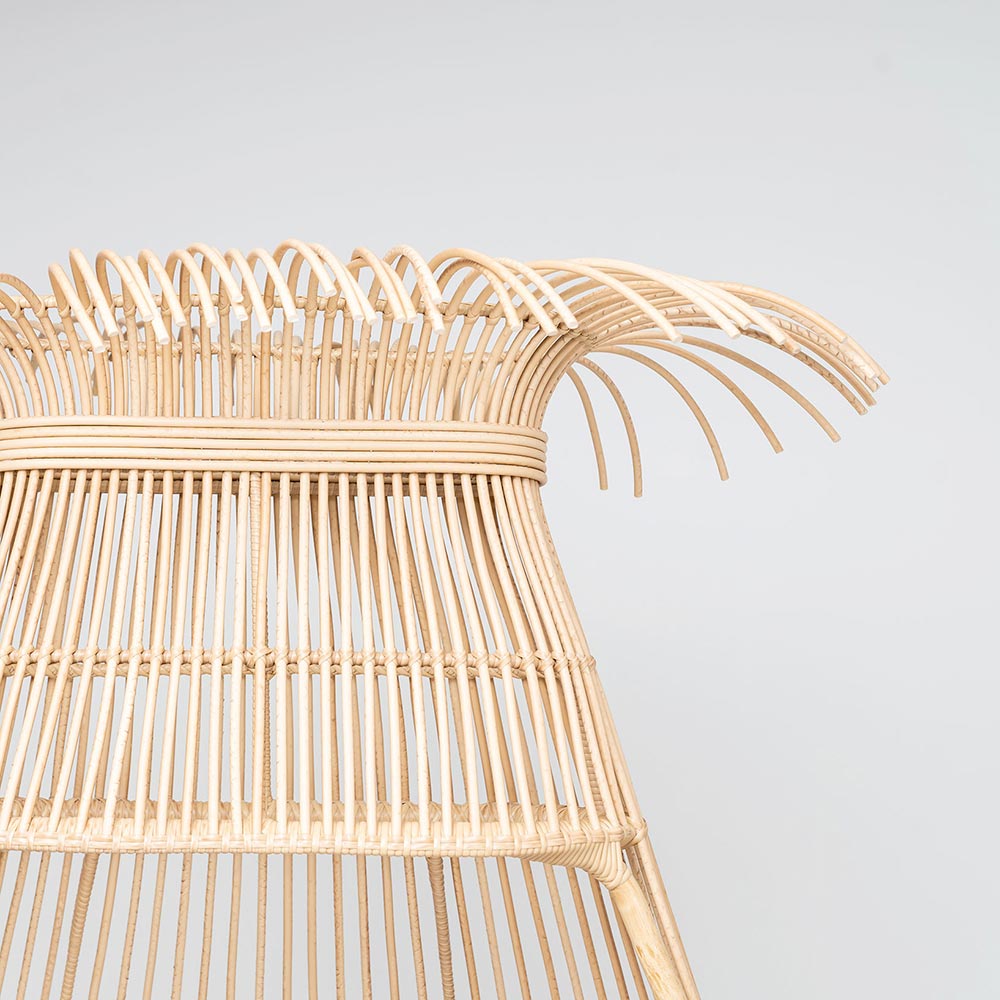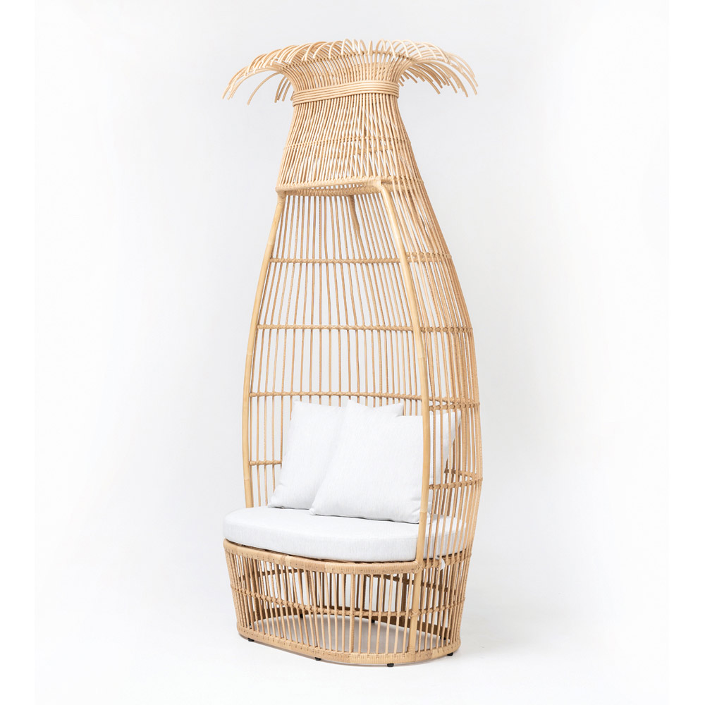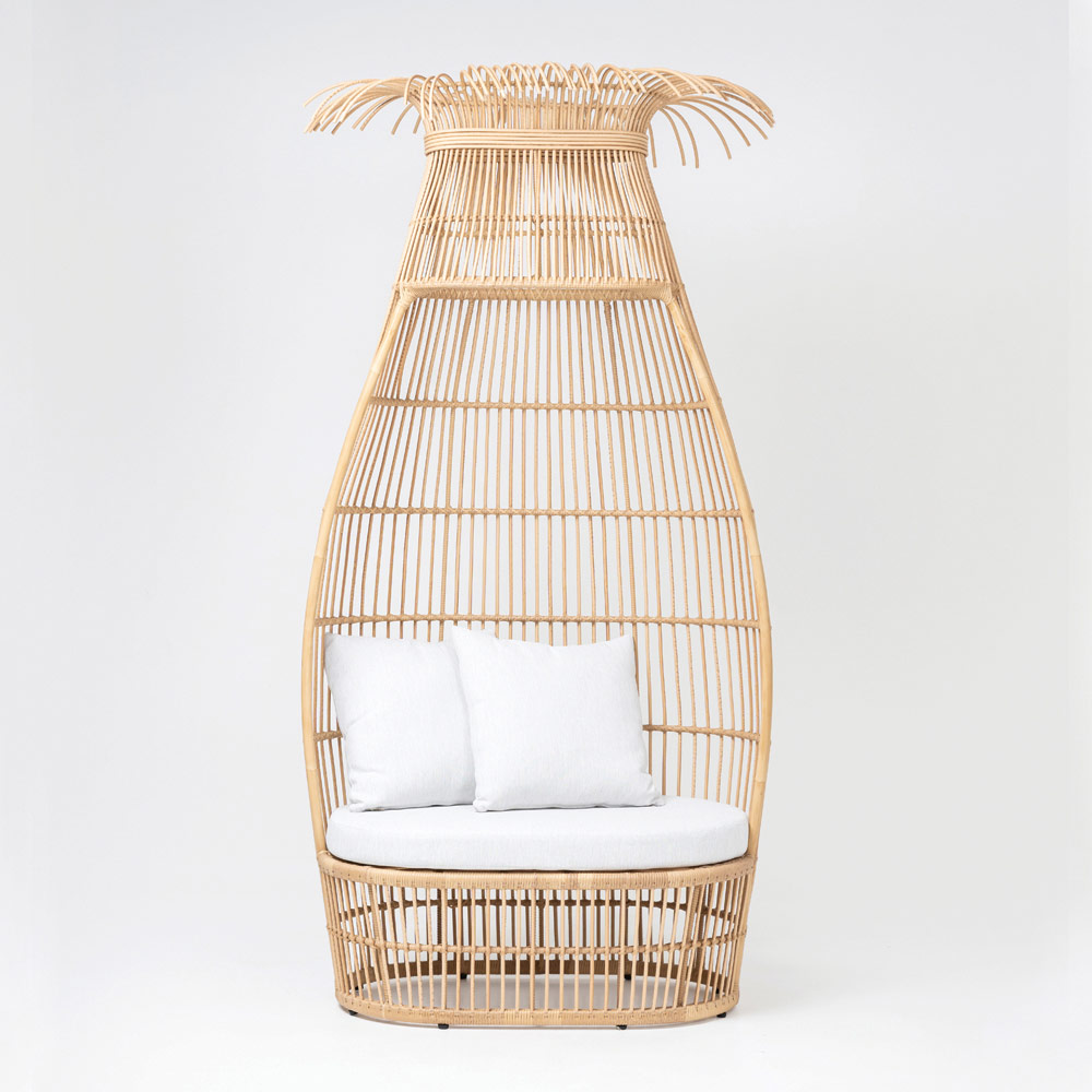 This garden chair is a true nest of elegance and comfort . Its tall, oval frame, expertly crafted from poly rattan, evokes images of exotic beach retreats and blends harmoniously into the outdoor environment. The open, airy design ensures airflow and light, while the curved shape provides a sense of protection and privacy .