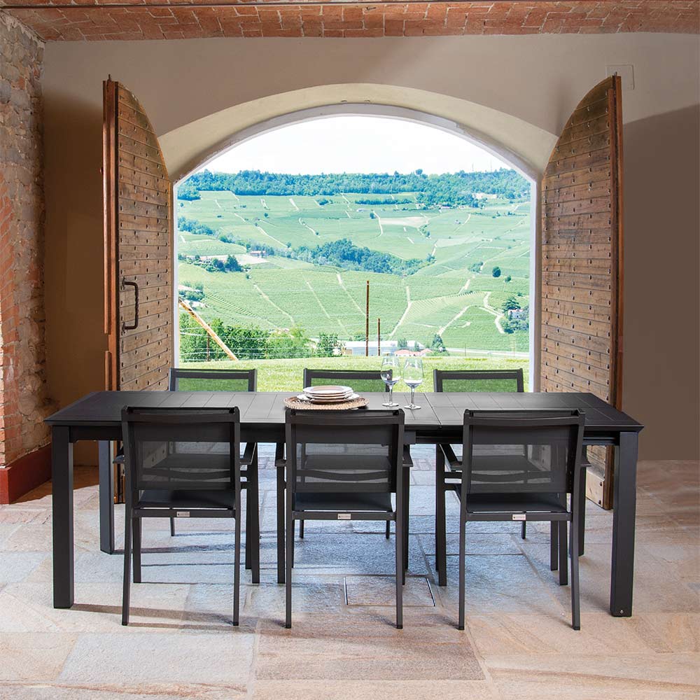 The clean lines and sophisticated color make this armchair an elegant addition to any garden, terrace or patio, effortlessly combining style and practicality. It is perfect not only for moments of relaxation, but also for receiving guests in a refined outdoor environment.