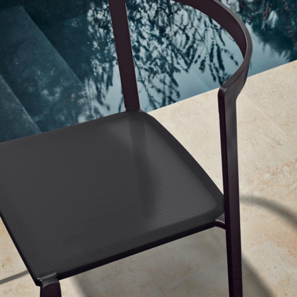 The detail of the aluminum leg ensures solidity and resistance while giving an elegant and functional design, incredibly handy and ideal to be used outdoor. The seat, welcoming and comfortable, transforms this garden chair into a perfect piece of furniture to complete any outdoor space, enriching it with a touch of modern and refined style.