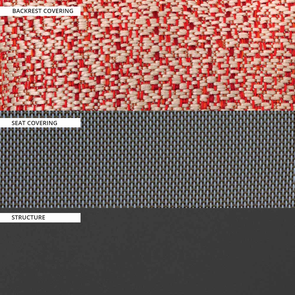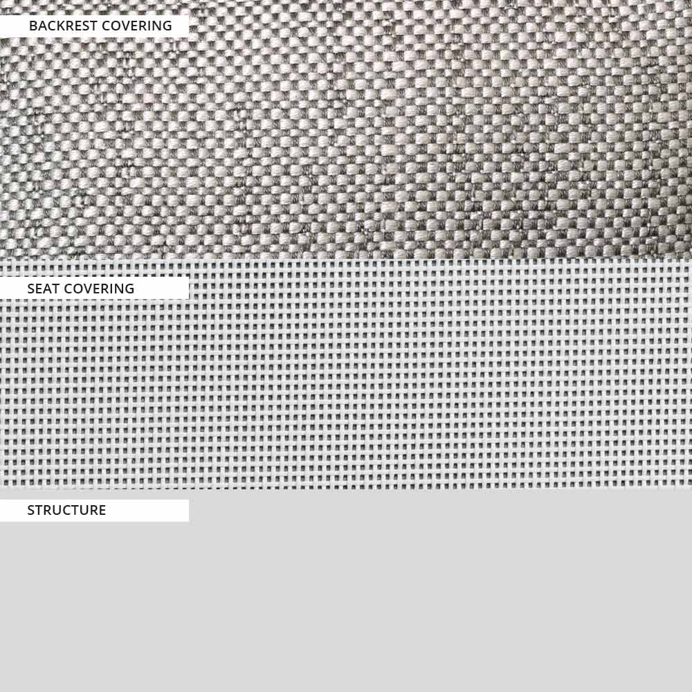 - gunmetal aluminum, black textilene and brown melange fabric.