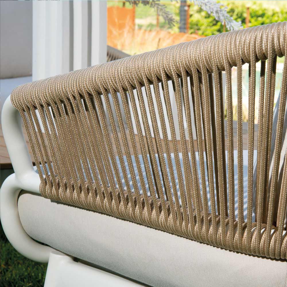 Discover the ultimate in comfort and style with our Rope and Aluminium Lounge Chair, perfect for adding a touch of contemporary elegance to any outdoor space. This seat features a sturdy powder-coated aluminium frame for durability and weather resistance, while the rope lines create a pleasing visual contrast that draws attention.