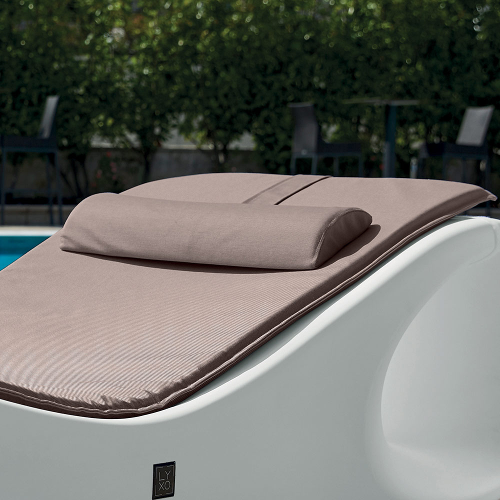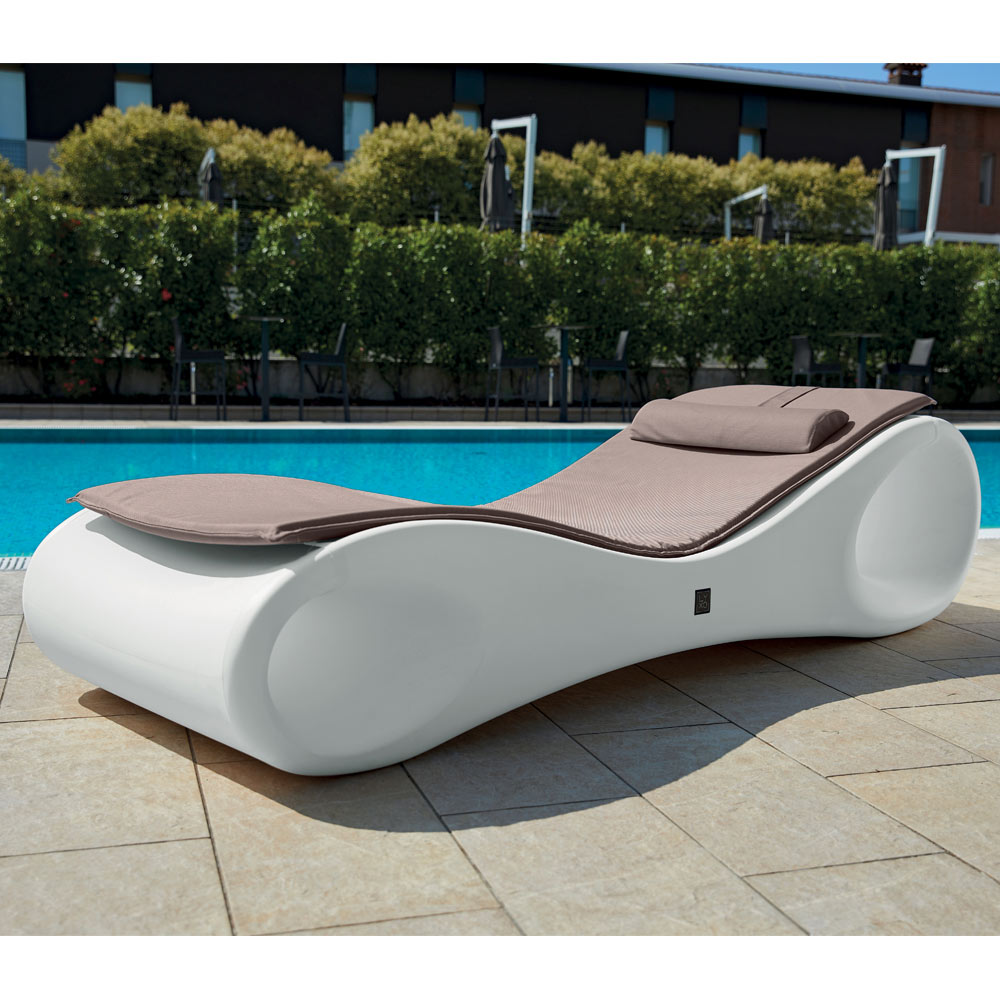 This polyethylene garden chaise longue is made in Italy , characterized by soft lines and an almost enveloping shape that transform it into a perfect combination of design and practicality. It is in fact ideal for use as a sun lounger in the garden, by the pool or in any other outdoor area. The practicality of this chaise longue also lies in the presence of the hole for the expulsion of water and the two openings at the ends which can be transformed into a support surface if necessary.