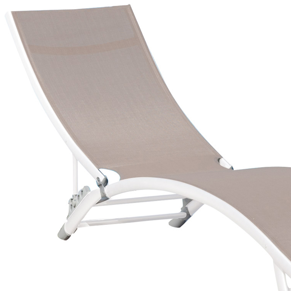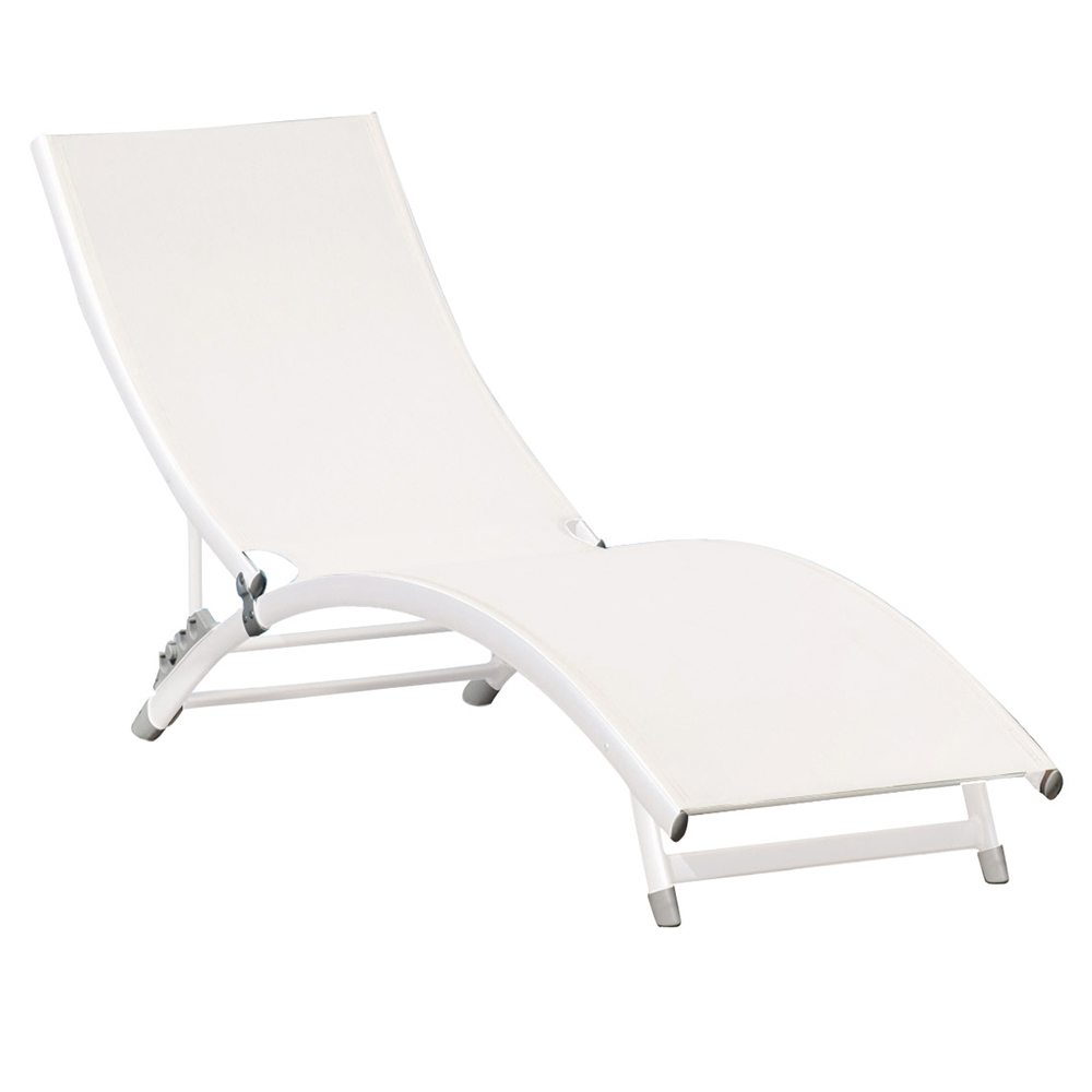 Outdoor chaise longue with aluminum structure and textilene seat.