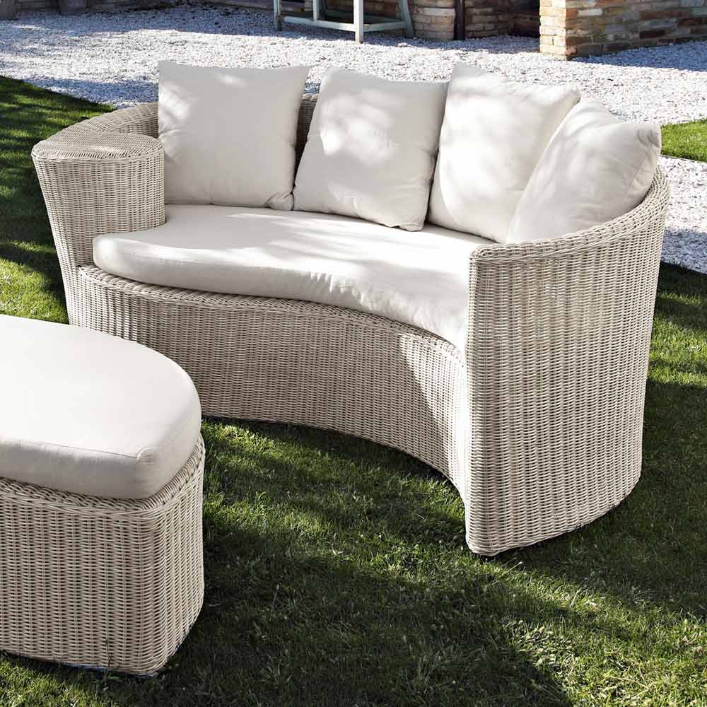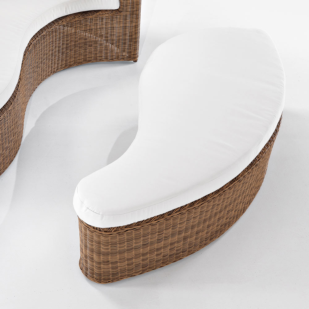 This lounger is characterized by its rounded design and full weave. Its soft and sinuous volumes blend perfectly with the large seat that allows you to enjoy optimal relaxation. The Donna daybed is made up of two complementary elements that can be joined at will to form a single chaise-lounge or two separate seats, depending on the occasion.
