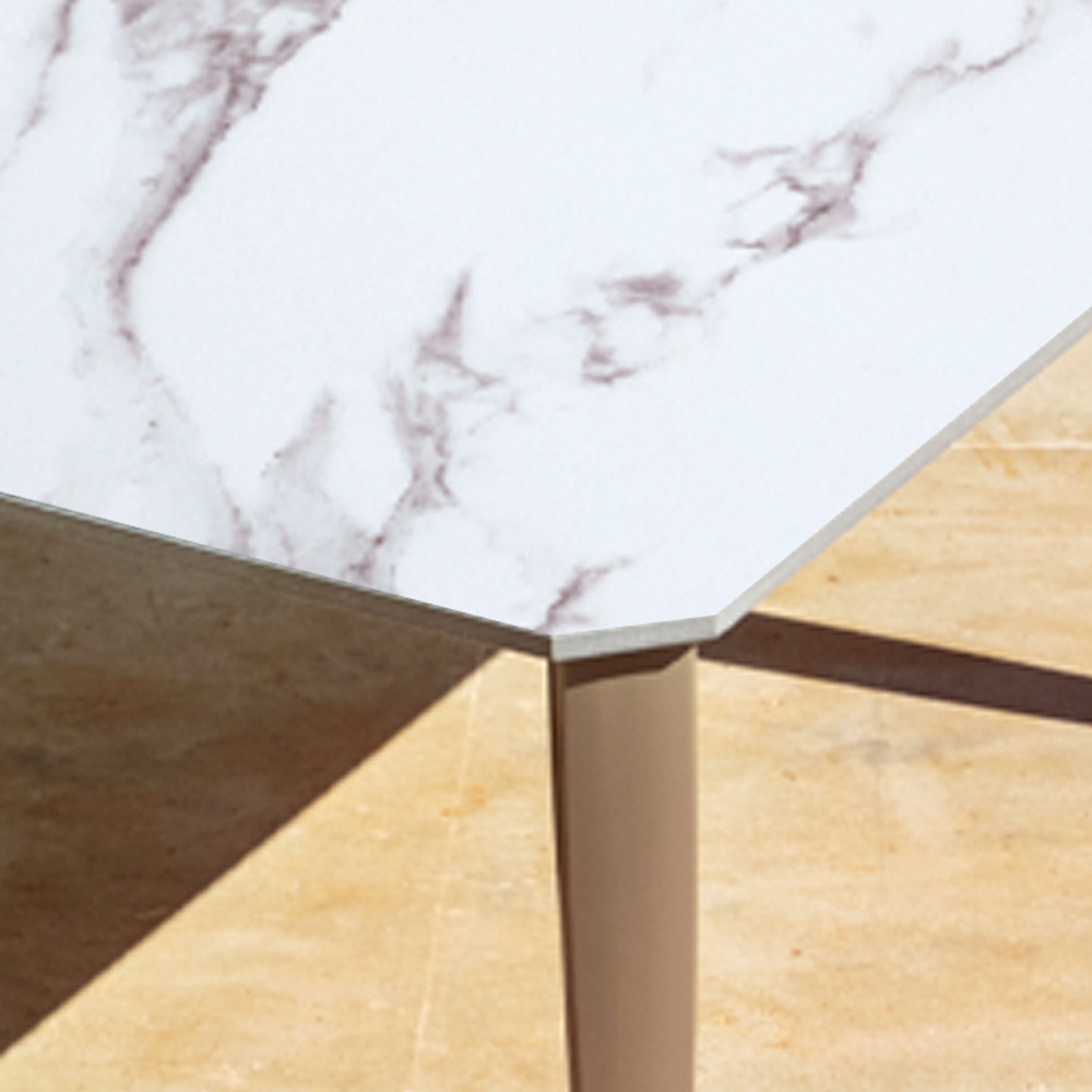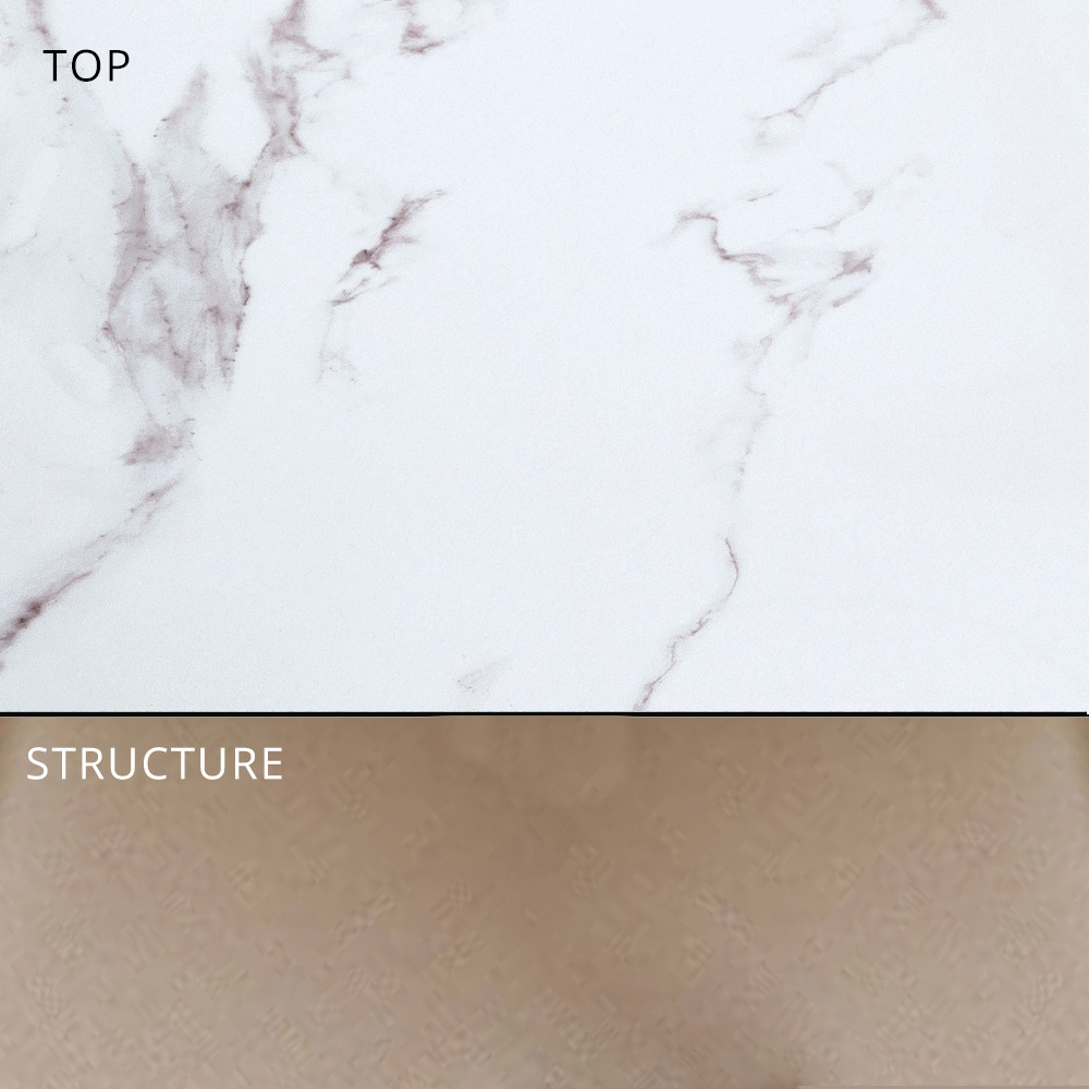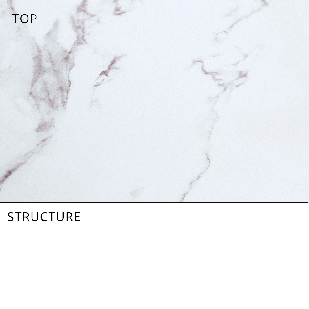- white aluminum structure and white marble effect stoneware top