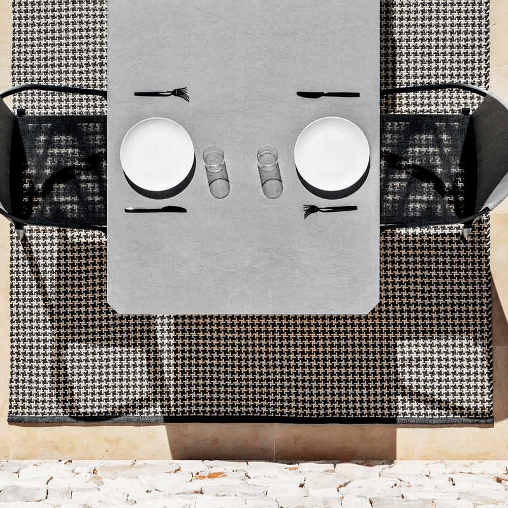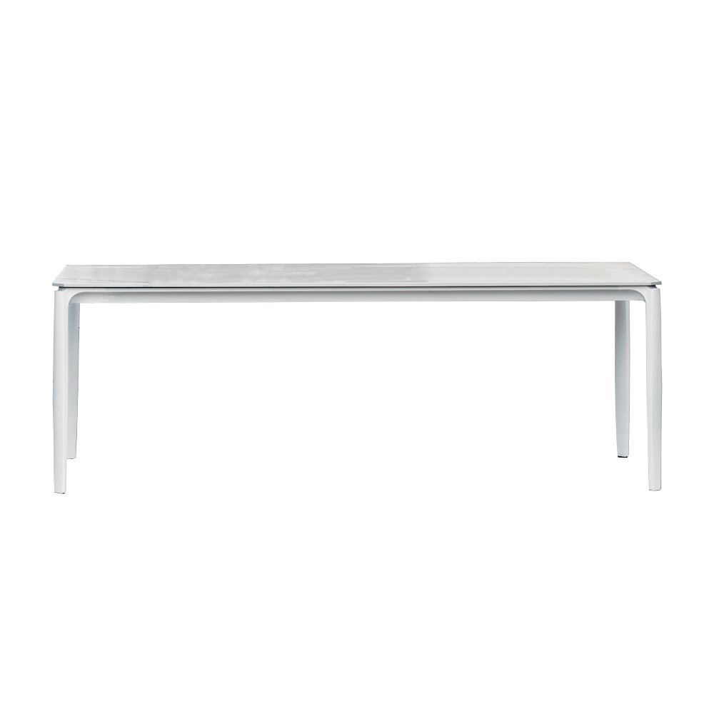 Outdoor dining table in aluminum with stoneware or hpl top in various finishes, made in Italy.