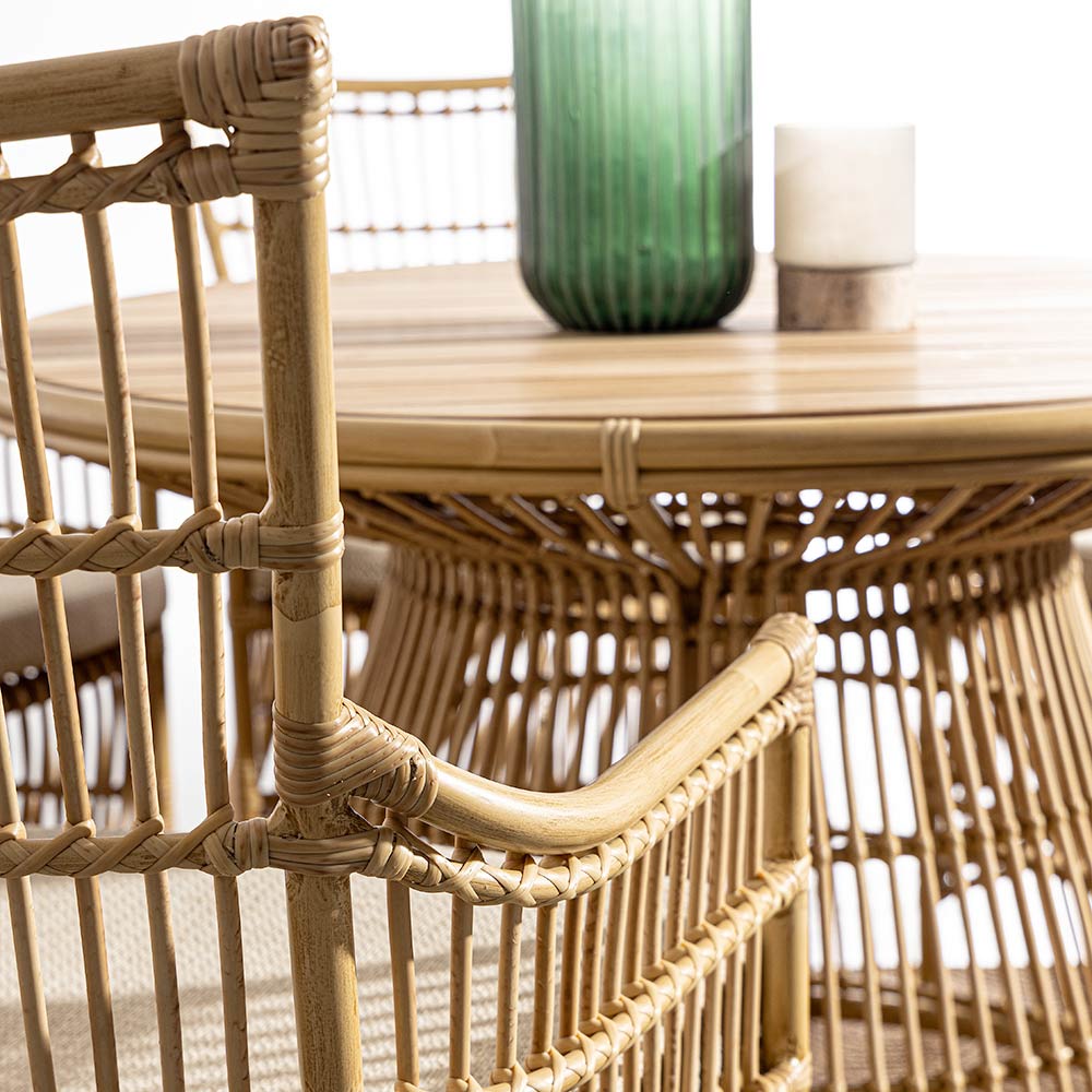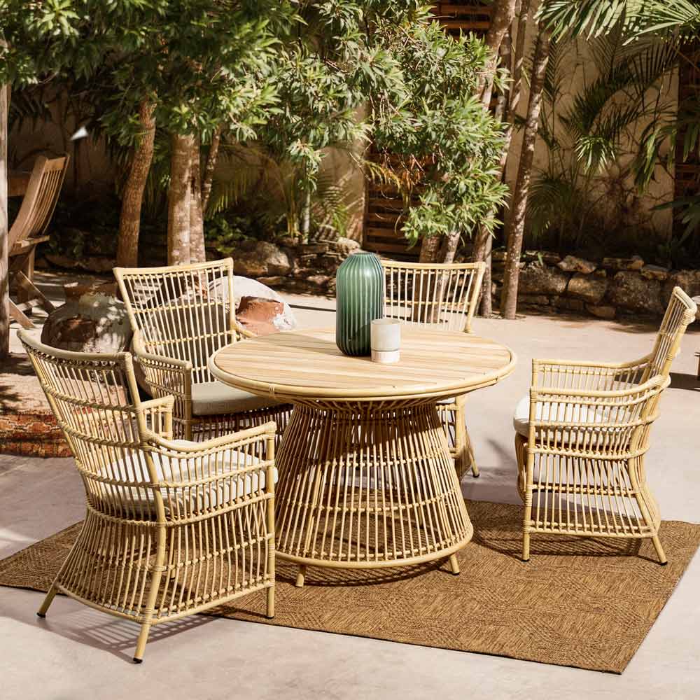 This garden table is a true masterpiece of design and functionality . With its organic shape and clean lines, it is a furnishing element that stands out for its style and elegance , perfect for hosting outdoor lunches and dinners. The top of the table is made of wood, ensuring remarkable durability and easy maintenance. The rattan-effect aluminum base creates a visual effect of lightness and openness , allowing the table to integrate perfectly with the surrounding environment, be it the greenery of the garden or the terrace of a modern house. Not just a table, but a meeting point , where design and nature blend to create unforgettable moments.