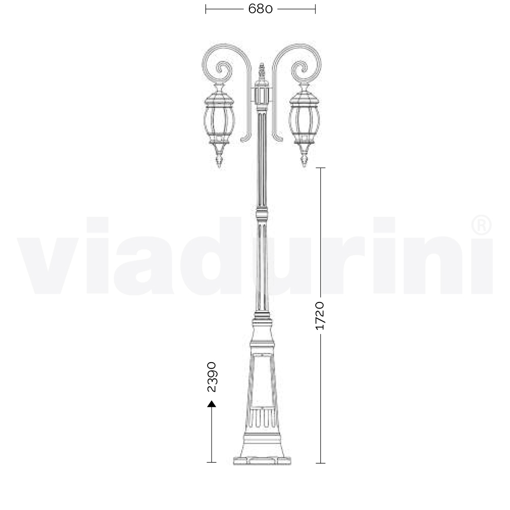 Anika is a two-light outdoor lamppost handmade in Italy with high quality material: die-cast aluminum structure and transparent polycarbonate diffuser (guarantees optimal and always homogeneous diffusion of light).